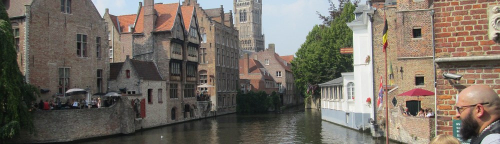 A long overnighter, taking the red-eye into Brussels where I have a vexed transfer to the train system. The postings are a bit opaque, but I stumble on the 11.03 to Ostend, via Brugge. Escaping the embrace of the city’s glass and steel, the Atomium glints in the distance as the train crosses the Maritime Canal. Flat Flanders fields shimmer in the morning heat. After Ghent, I almost alight at the wrong stop, thanks again to poor onboard postings, but a young Frenchman intervenes and at last I gain Bruges.