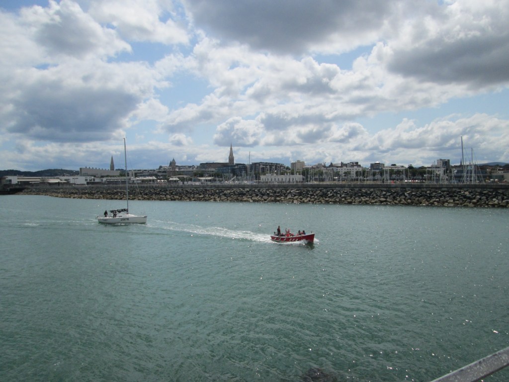Then came the construction of the harbour. Dunleary, as then known, was proposed as a refuge harbour for Dublin Bay following a litany of shipwrecks. The harbour was completed in the eighteen twenties and managed to nick the franchise for the mail packet service to Britain from Howth in north Dublin. The Mail Boat became established as an Irish icon, synonymous with the sadness of high emigration.