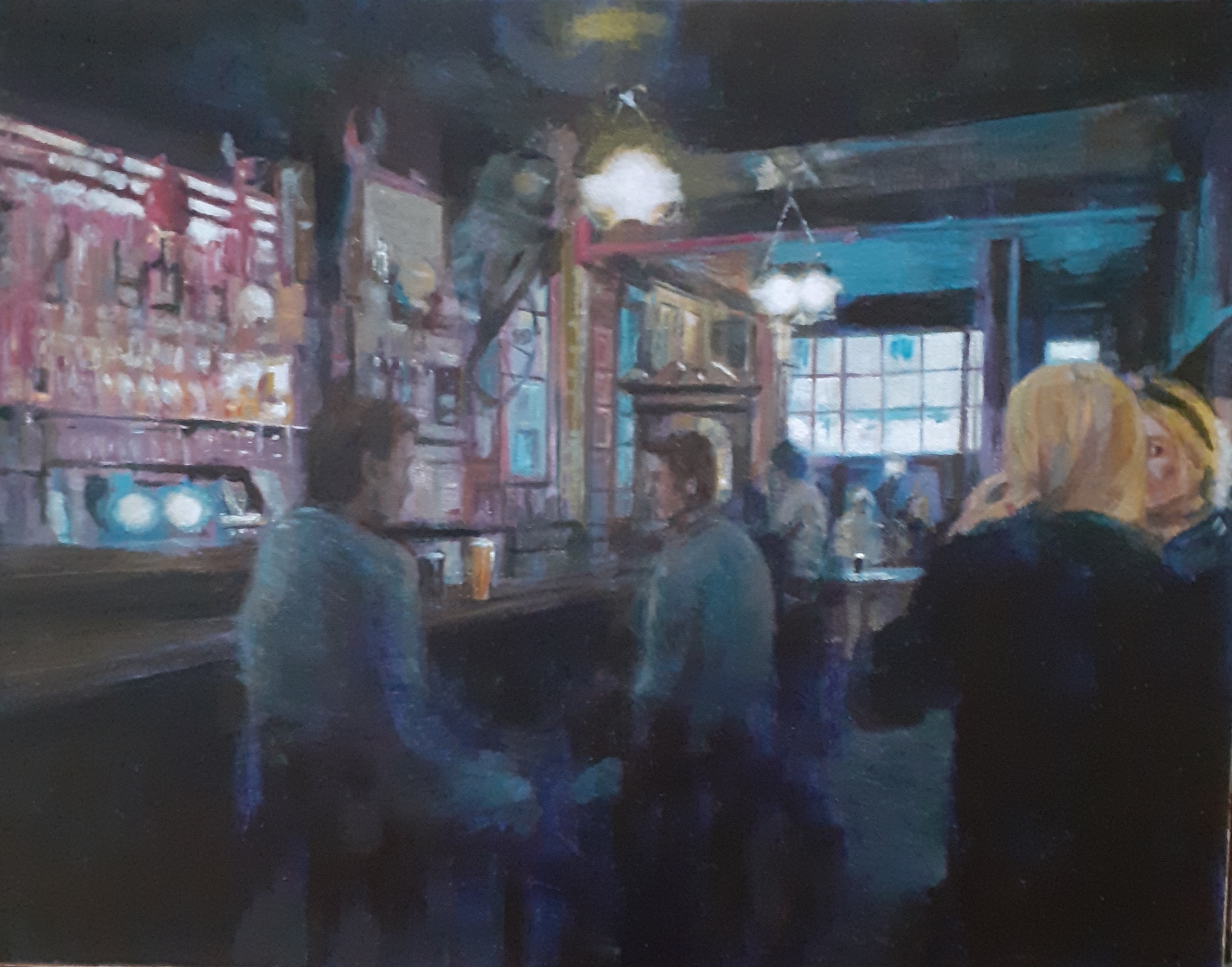 O’Donoghue’s is often my first port of call when I go in to Dublin. It’s been a while since my last visit. I always go there on my birthday, and other places besides. My annual treat is looking unlikely, my birthday’s on Monday. But a man can dream. This painting is a typical view, as I nurse a pint of Harp and take in the scenery, and Sally O’Brien and the way she might look at you.