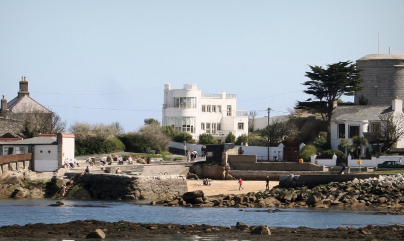 Sandycove itself is a popular bathing spot and the focus for a famous literary pilgrimage. The quirky and distinctive promontory is crowned by a Martello Tower. It presides over a public bathing spot and a tiny harbour on Scotsman;’s Bay, with the famous, nay notorious Forty Foot Bathing spot hidden to the east. Another distinguishing feature is Michael Scott’s House, Garagh, a white marine art deco that suggests Miami Beach more than South Dublin’s Rocky Shore. Designed in 1937, Scott set out to harmonise with the curvilinear lines of the neighbouring Martello Tower and to suggest, somehow or other, the work of James Joyce, his hero.