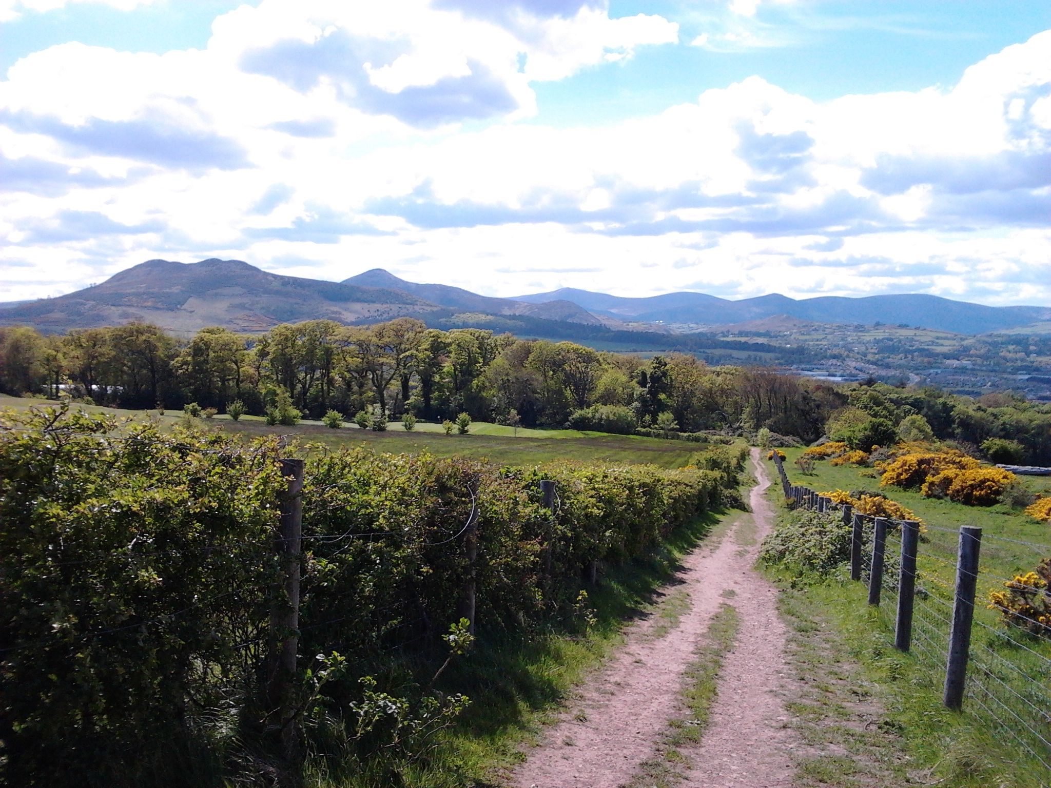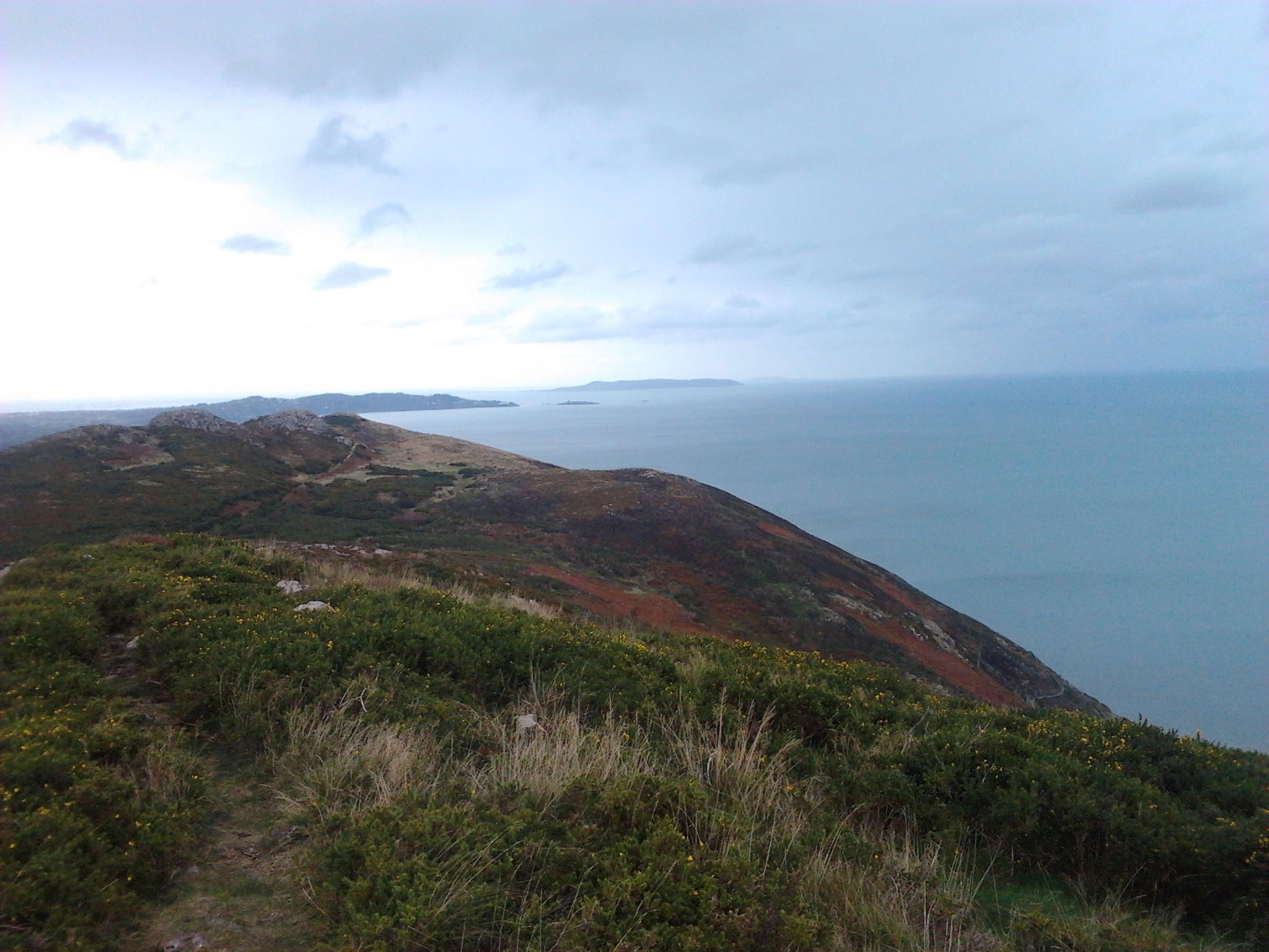 It’s the sort of panorama that puts you on top of the world. The coast of Wales is sometimes visible on the eastern horizon, a chimera occurring only when conditions are just right. The view to the north includes Dublin in the mid distance, and you can clearly pick out the twin chimneys of the Pigeon House. The Mourne Mountains sometimes form a faint serration on the horizon. Around the western arc are the beautiful domed granite mountains of Wicklow.