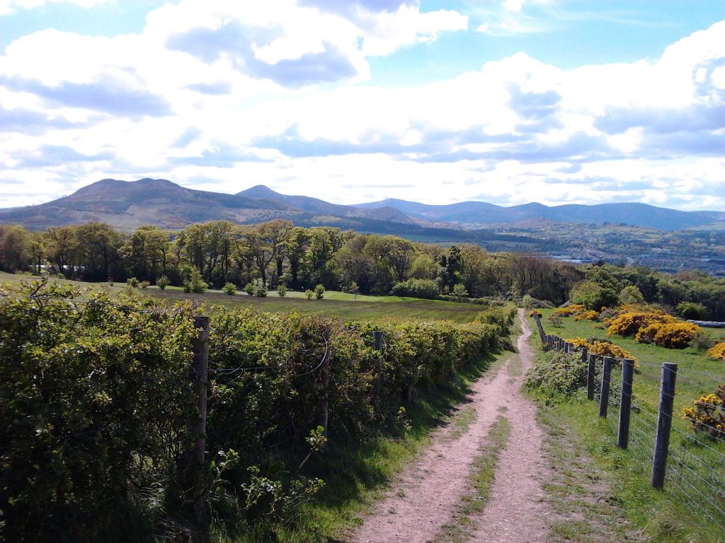 There is also a longer, but more gradual ascent from the Southern Cross, along the boundary of the Bray Golf Course. This route offers superb views to the west with the Sugarloaf mountains particularly prominent. This distinctive low range which includes Bray Head, is formed of metamorphic rock, quartzite, of the Cambrian period, unlike the granite Wicklow range formed in more recent Devonian times