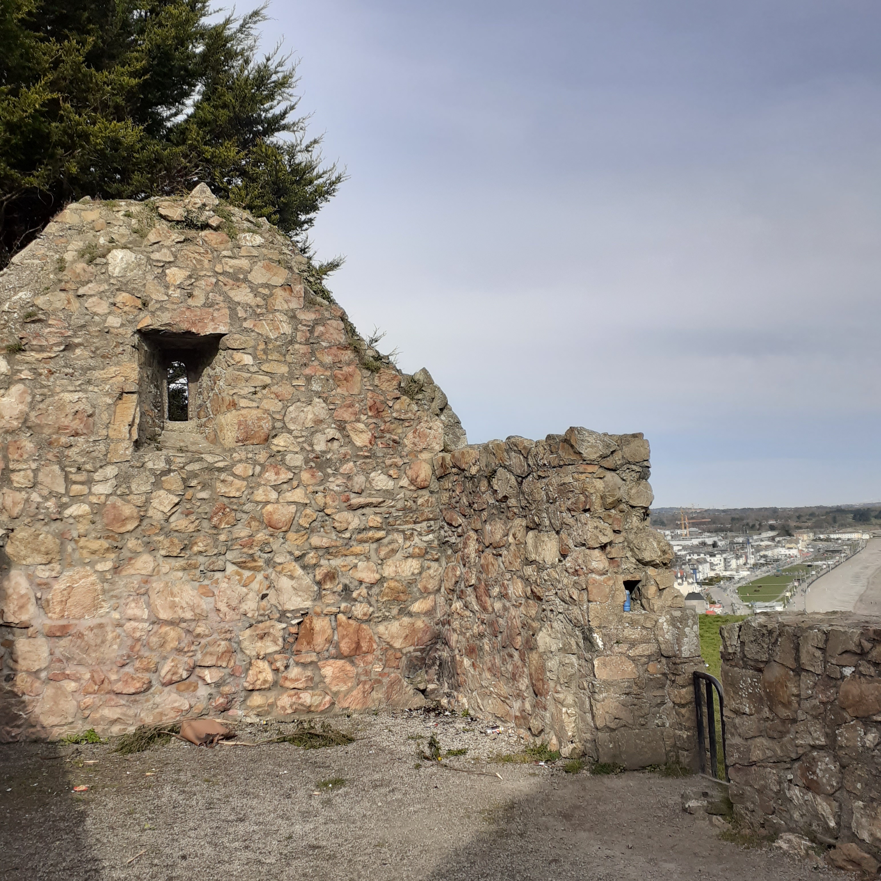 It may be a place of pilgrimage, but it’s not a compulsory factor for all. Most go to be there, to take in the moment and all the history it has witnessed. Some poke fun at it. For a while the monument was fitted with a basketball net. Of course, many graffiti on it, pledges of love, or. hate, or simply marking that moment in time. There’s plenty of room to twirl through three hundred and sixty degrees. You can clearly discern our route to the south, at least as far as Wicklow Head.