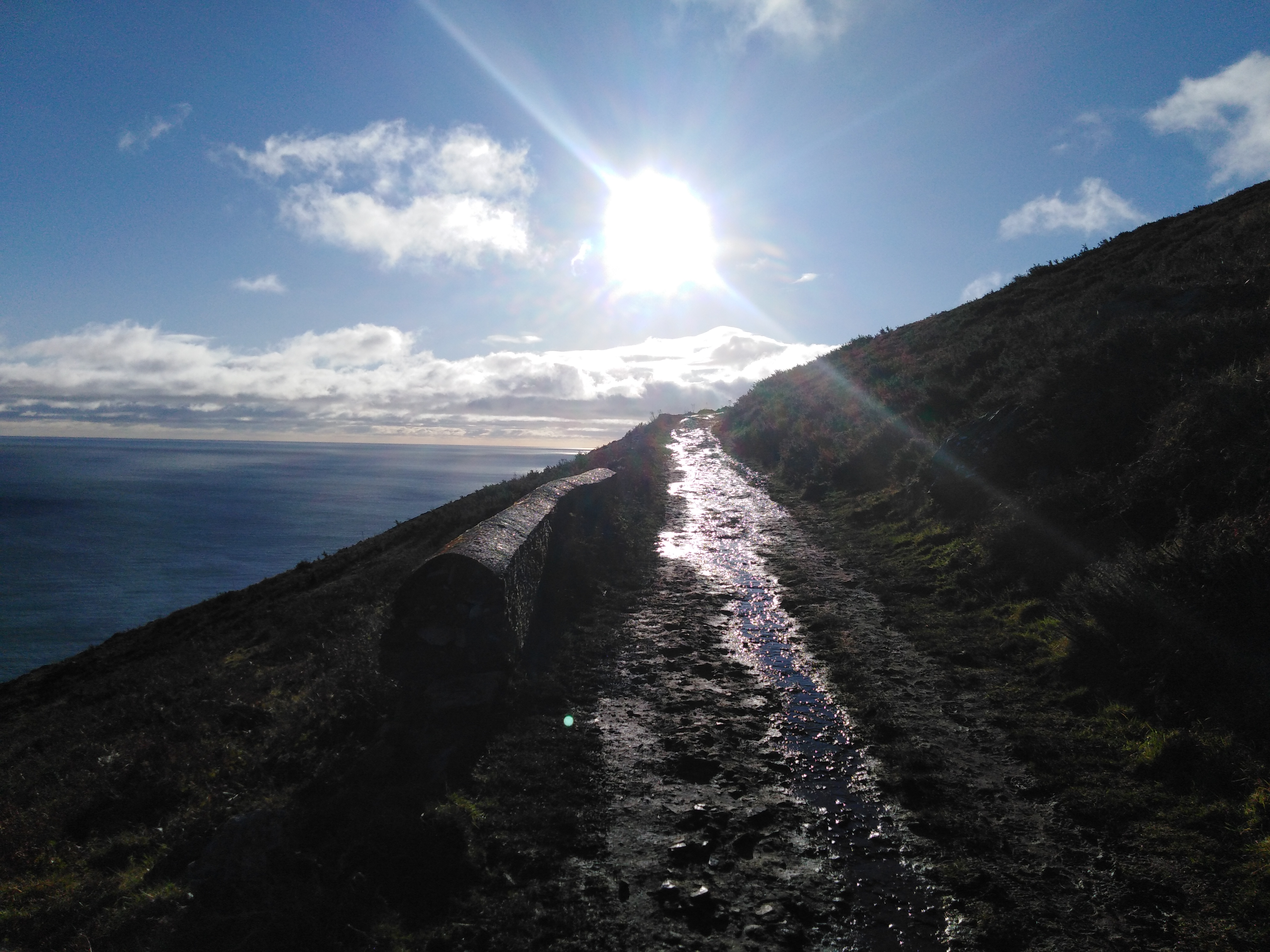 Beside the Scenic Car Park, the path forks. To the right, the steep walk up Bray Head. To the left, the Cliff Walk towards Greystones. The Cliff Walk is the main route along Wicklow’s Wonderful Coast. The path over the top of Bray Head is the high road.