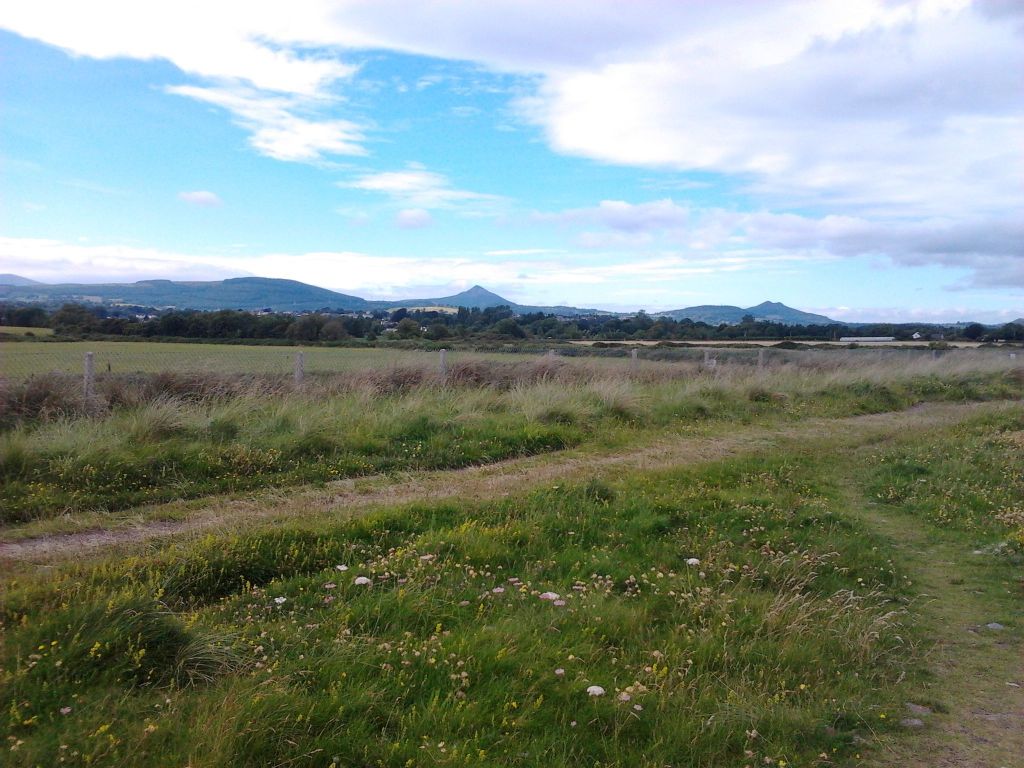 The steep climb to the church is rewarded with magnificent views over North Wicklow. The granite mountains hug the horizon off to the west, and the far end of the coastal plain is marked by the Sugarloaf Mountains and Bray Head in the far north. Looking seawards, you can spot the distinctive onion domed tower of Saint Livinius Church and graveyard. This was the original Church of Ireland place of worship. Built in about 1600, it was decommissioned in 1900.