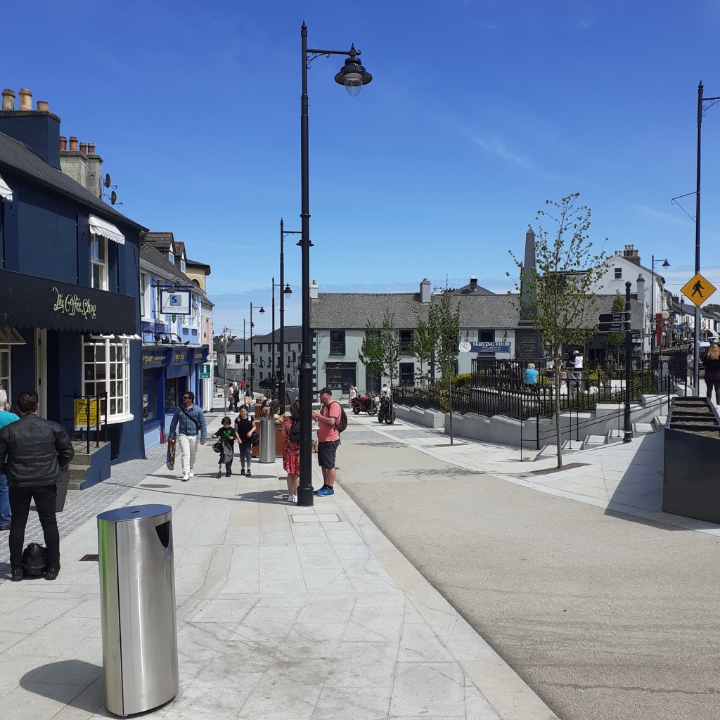 The main road shimmies down to become Main Street. There’s a Pay and Display carpark to the left beside the supermarket with a couple of coffee shops and small independent outlets. An attractive range of murals is inconveniently cited. Obscured by cars, you could say. It gives a good outline of what to look out for in the town, a quick cartoon strip if Vikings and other seafarers, saints and sinners and landmark buildings. Back on Main Street, it’s only a few yards to the town centre at Fitzwilliam Square, which is triangular.