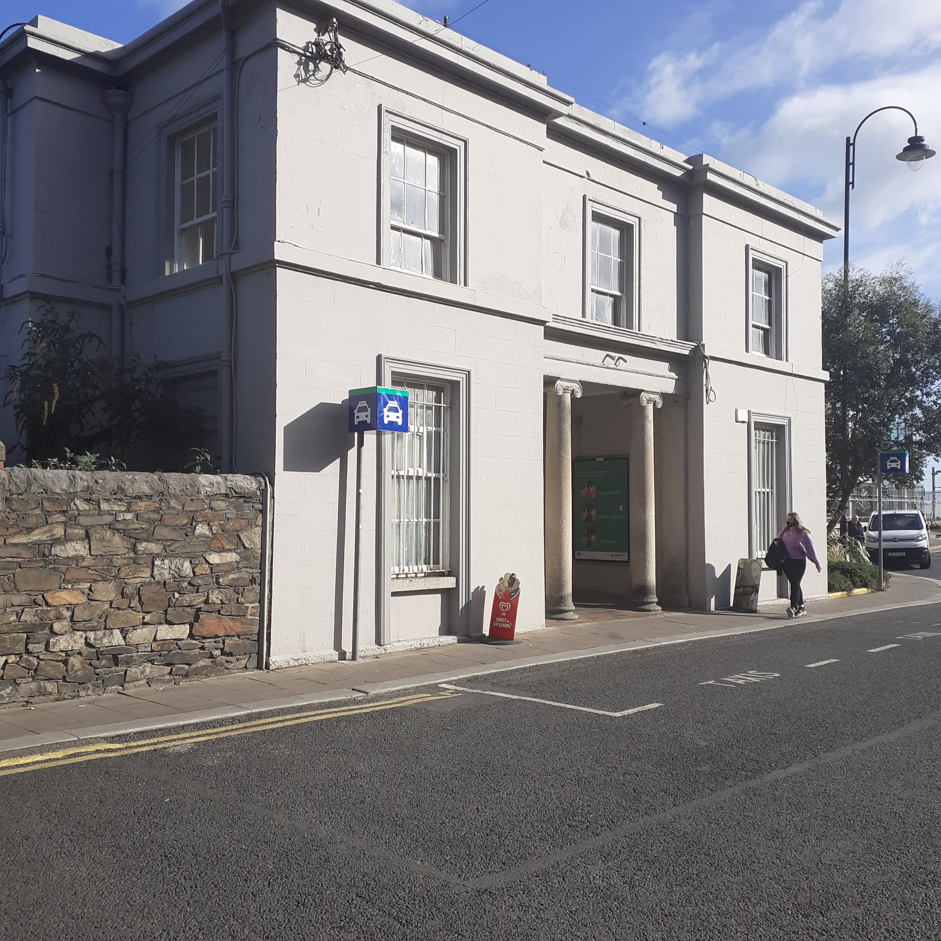 As a designated route linking Blackrock to Booterstown, the park is open all hours. There’s a children’s playground, designated cycle path, and an outdoor gym area. Heading around the pond, there’s a folly on the larger island to the south and here the terrain is softened and shaded by mature woodland. Farther on there’s a traditional bandstand. You can exit the park uphill at an entrance taking you to Main Street, or, as I did, through a narrow lane along the railway line, emerging at the Station.