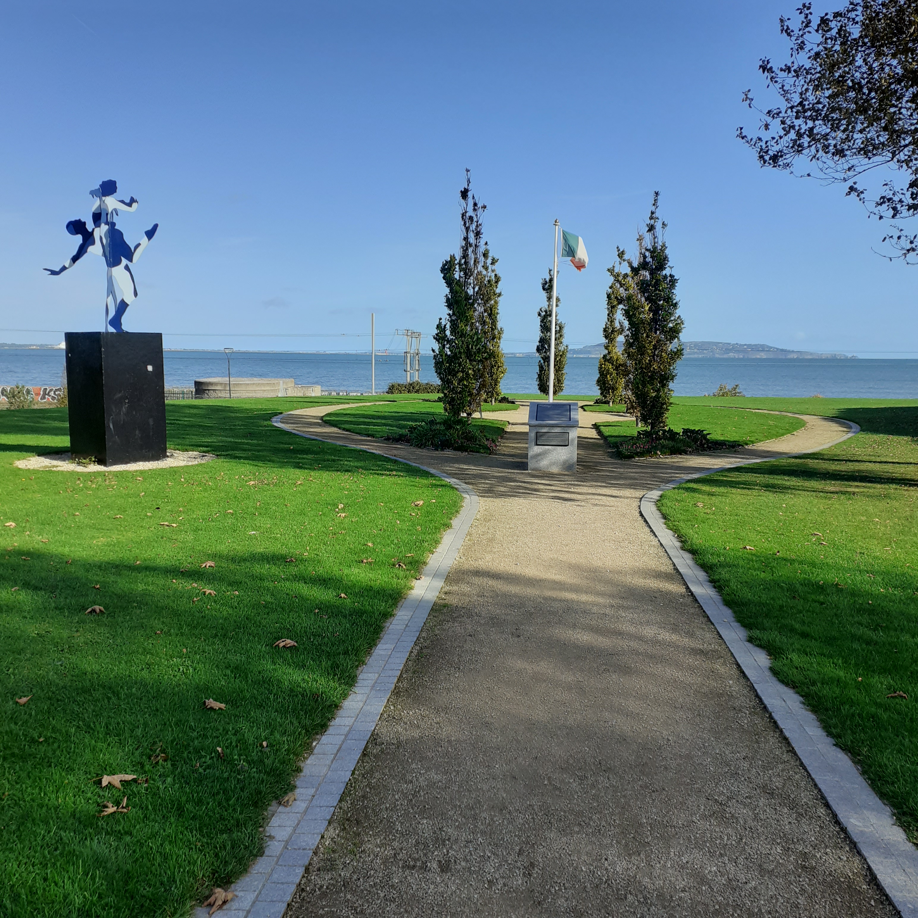Blackrock Park provides a scenic route into town and connects to the linear coastal park by way of Williamstown Martello Tower. The Rock Road entrance takes us across a rising green lawn which culminates in a twin pillar entrance against the eastern sky. To the left of this is a monument to Irish nationalism. The commemorative garden was opened in 2016 on the centenary of the 1916 Rising. The coastal views from here are splendid. Meanwhile, to our right, entrance through the twin piers takes us into the Park proper.