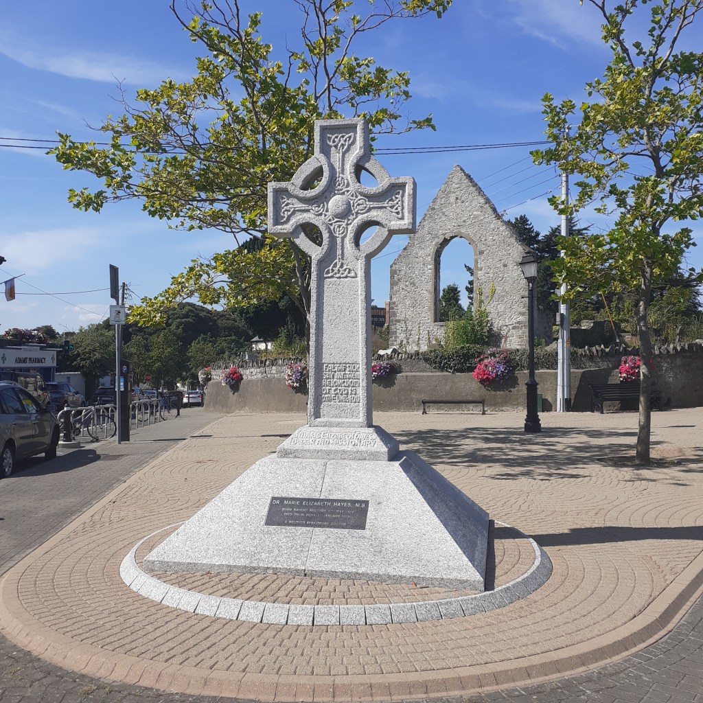 The Roman Catholic church, completed in 1864, was also called St Assam’s and lies just across Main Street from the rath. Designed by Patrick Byrne, a prominent church architect of the time, who died the year it opened. In 1962 it was replaced by the huge modernist hulk, the church of Our Lady, Mother of Divine Grace across the main road. The old church continued to function as a parish social centre und was only recently deconsecrated and earmarked for office development.