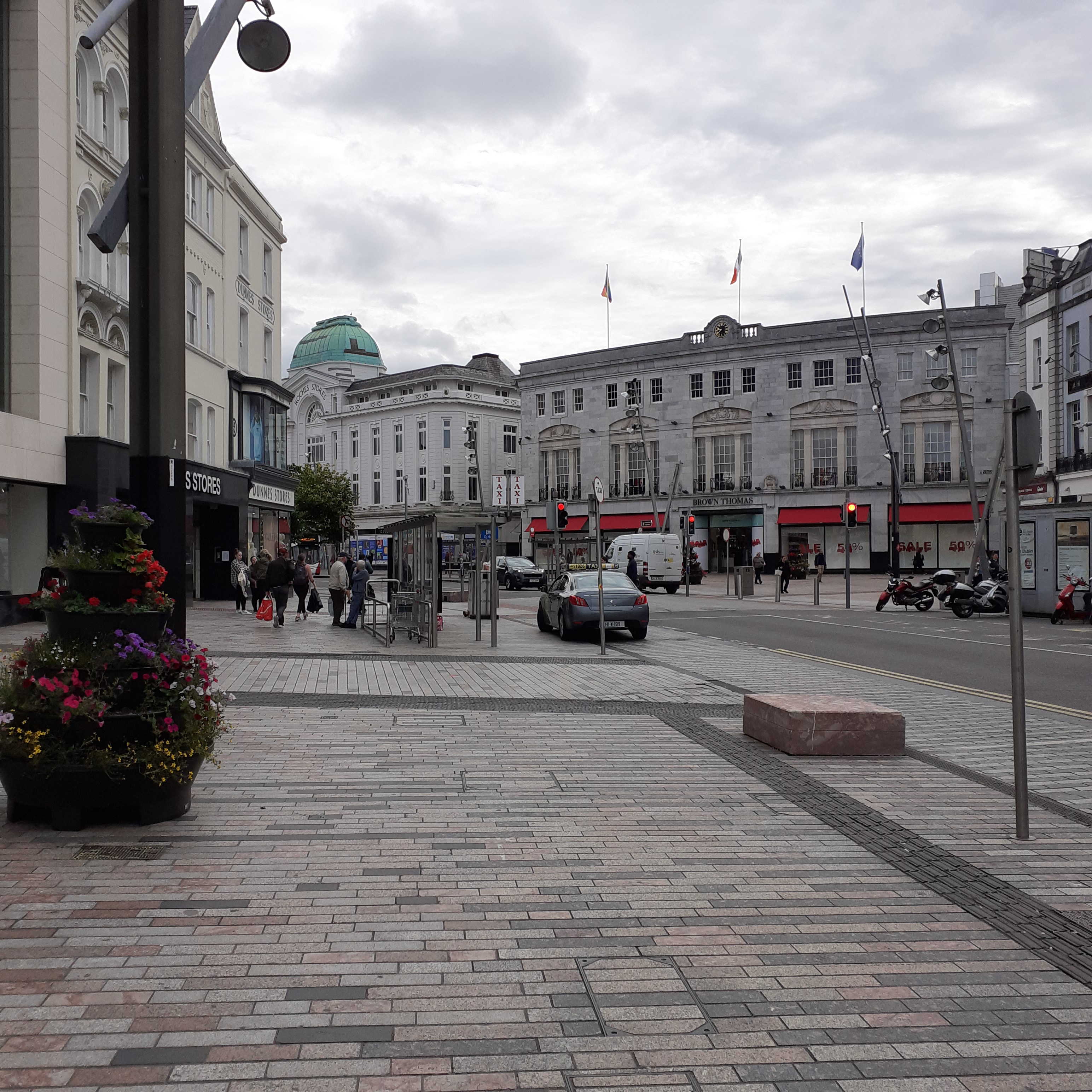 As a medieval settlement, Cork was a walled town west of Grand Parade, centred on what is now known, somewhat misleadingly, as Main Street. The official, and actual, main street, Patrick Street, is wide, but spectacularly curved. This actually follows the line of an old river channel in medieval times, the modern street being built on vaults over the water.