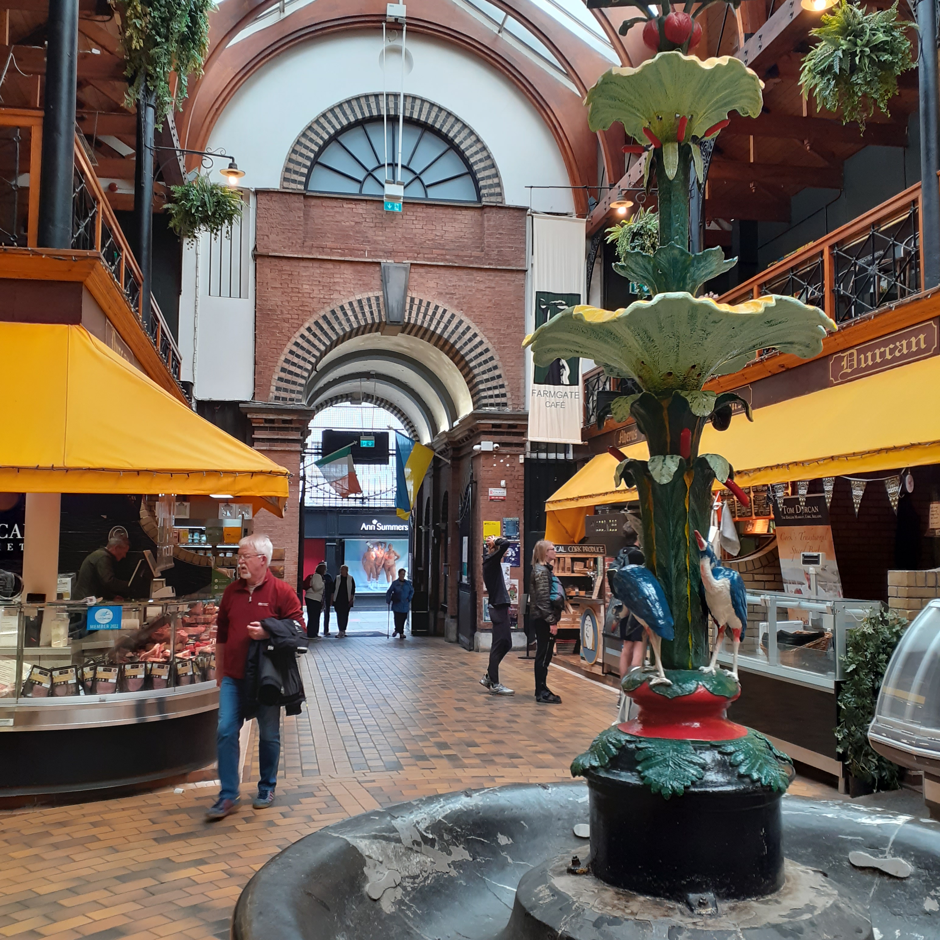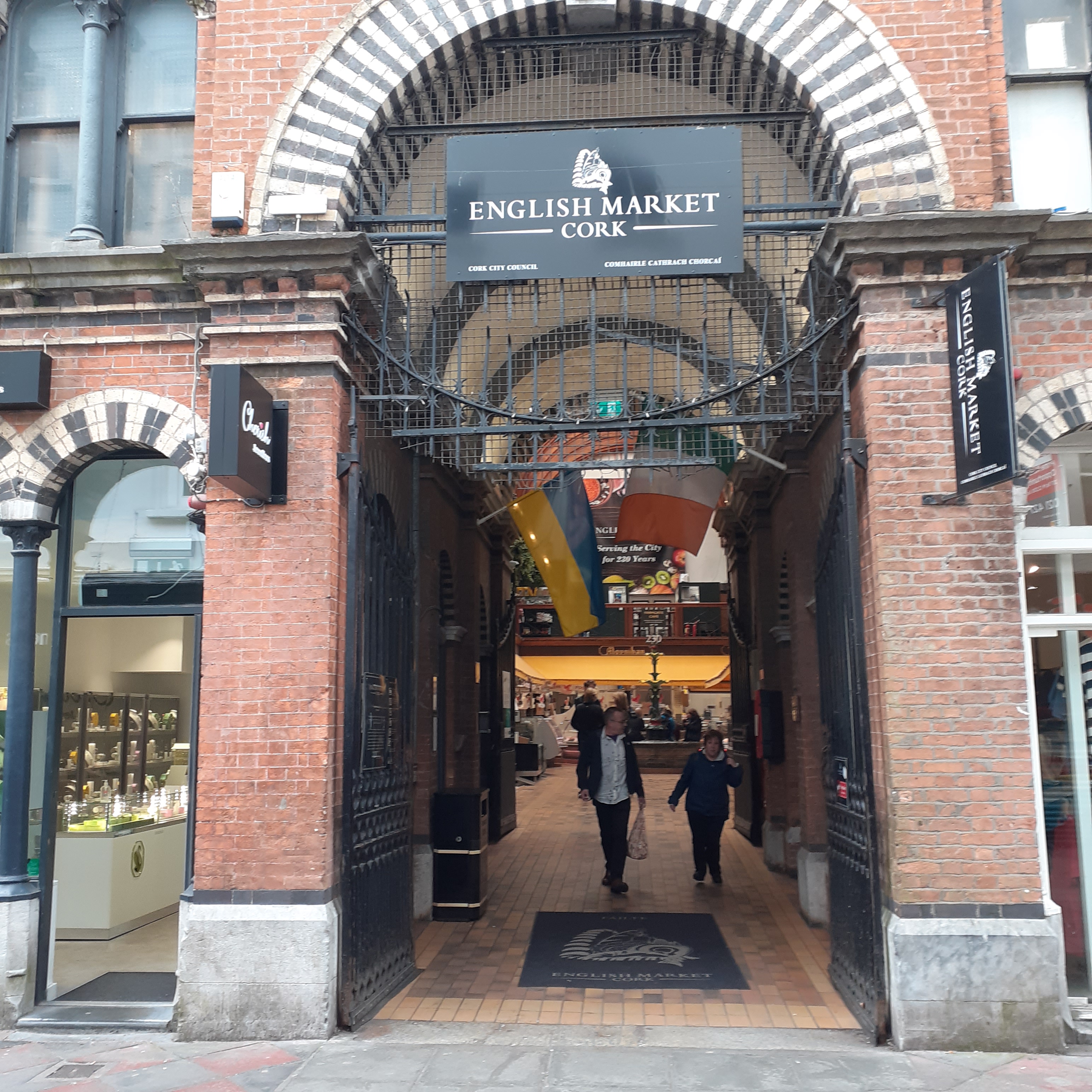 Just off the west end of the street, you’ll find the English Market. With its butchers and bakers and candlestick makers this is a perfectly preserved urban market in the Victorian style. It actually dates back to 1610 when first established by the Protestant city council. The name evolved to distinguish it from the old Irish Market on Cornmarket Street nearby, now the Bodega. The present building complex dates from 1786, though it has had further significant alterations since. The main entrances at Patrick Street and Grand Parade were part of a Victorian makeover. The Grand Parade ornamental entrance was designed by John Benson in 1862. Within the covered market, the arcades converge at a central cast iron fountain ringed by a raised mezzanine with restaurants and cafes.