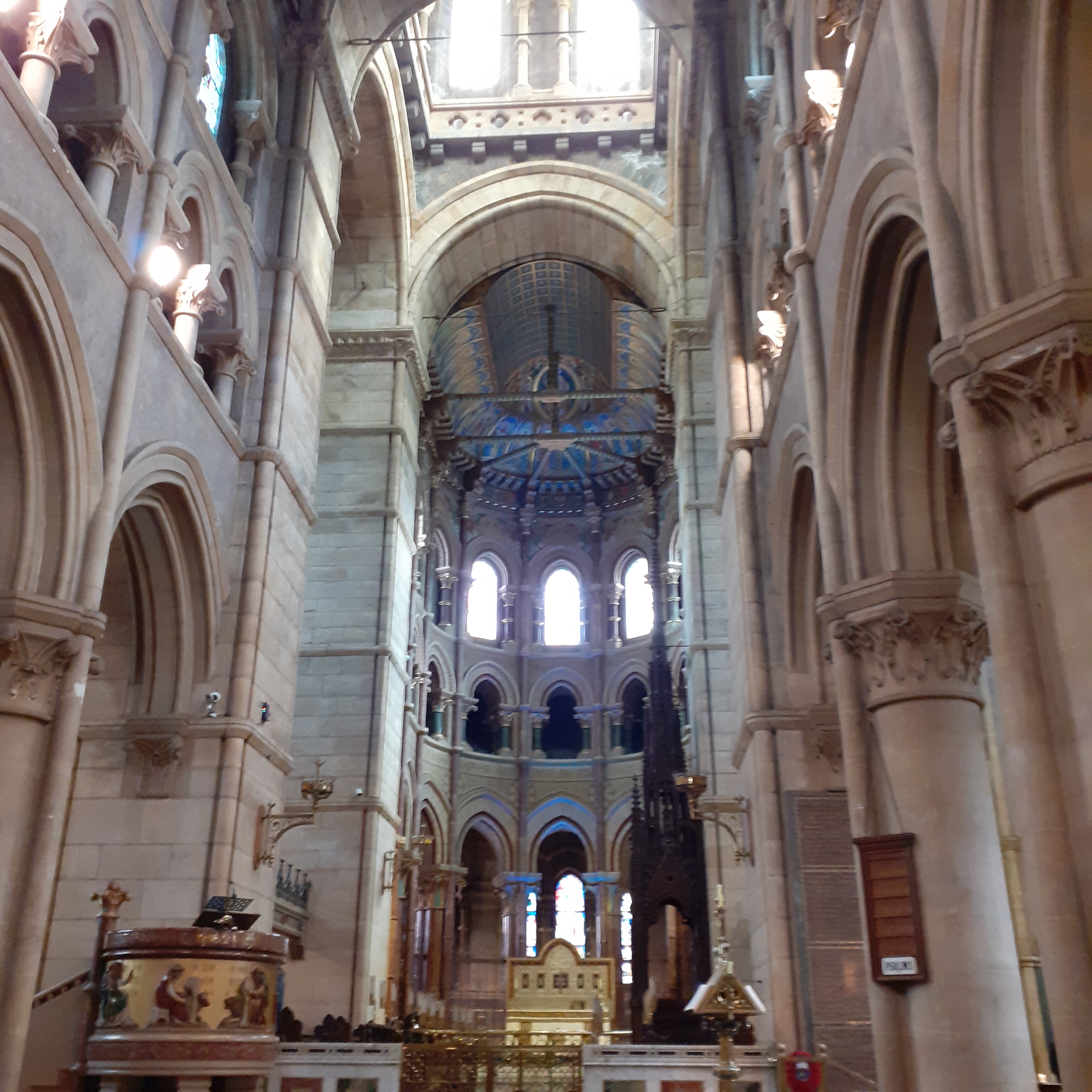 Saint Fin Barre’s lies just across the south branch of the Lee. It is the Church of Ireland Cathedral for Cork. Begun in 1863 and designed by English architect William Burges. It is a Gothic Revival masterpiece. Twin spires frame the entrance and the massive central spire towers above the nave. The exterior creates an impression of grand scale despite a relatively small interior. It replaced the eighteenth century building, long derided as ‘a shabby excuse for a cathedral.’ Finbarr is the patron saint of Cork city, born in the mid sixth century, he was based at Gougane Barra, some miles to the west at the source of the River Lee.
