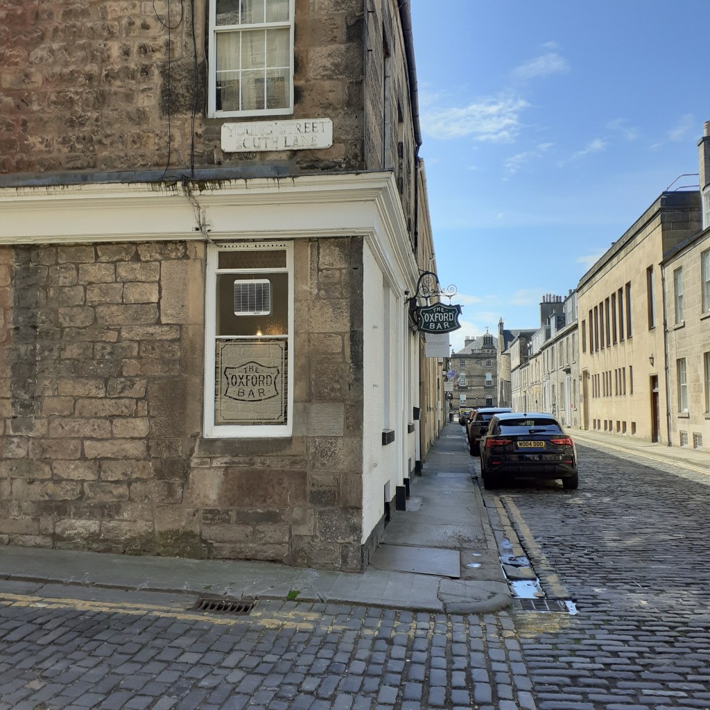 Rankin puts the Oxford Bar, Rebus’s most regular haunt, top of his list. Coincidentally, my trip to Oxford some years back, also took a writer’s prism, in this case Colin Dexter’s Morse. Myself and M took a wonderfully entertaining tour in tandem with the adventures of Morse, and of course the long suffering Lewis. The Oxford Bar itself is in Edinburgh’s New Town. The idea of the New Town was first proposed by James VII when Duke of York (of New York fame) as a sophisticated extension to the overcrowded ancient city above. The Battle of the Boyne put paid to that, as James lost his crown, but the idea was refloated in 1766 and a design competition held. This was won by a young local architect James Craig and work soon began on the project.