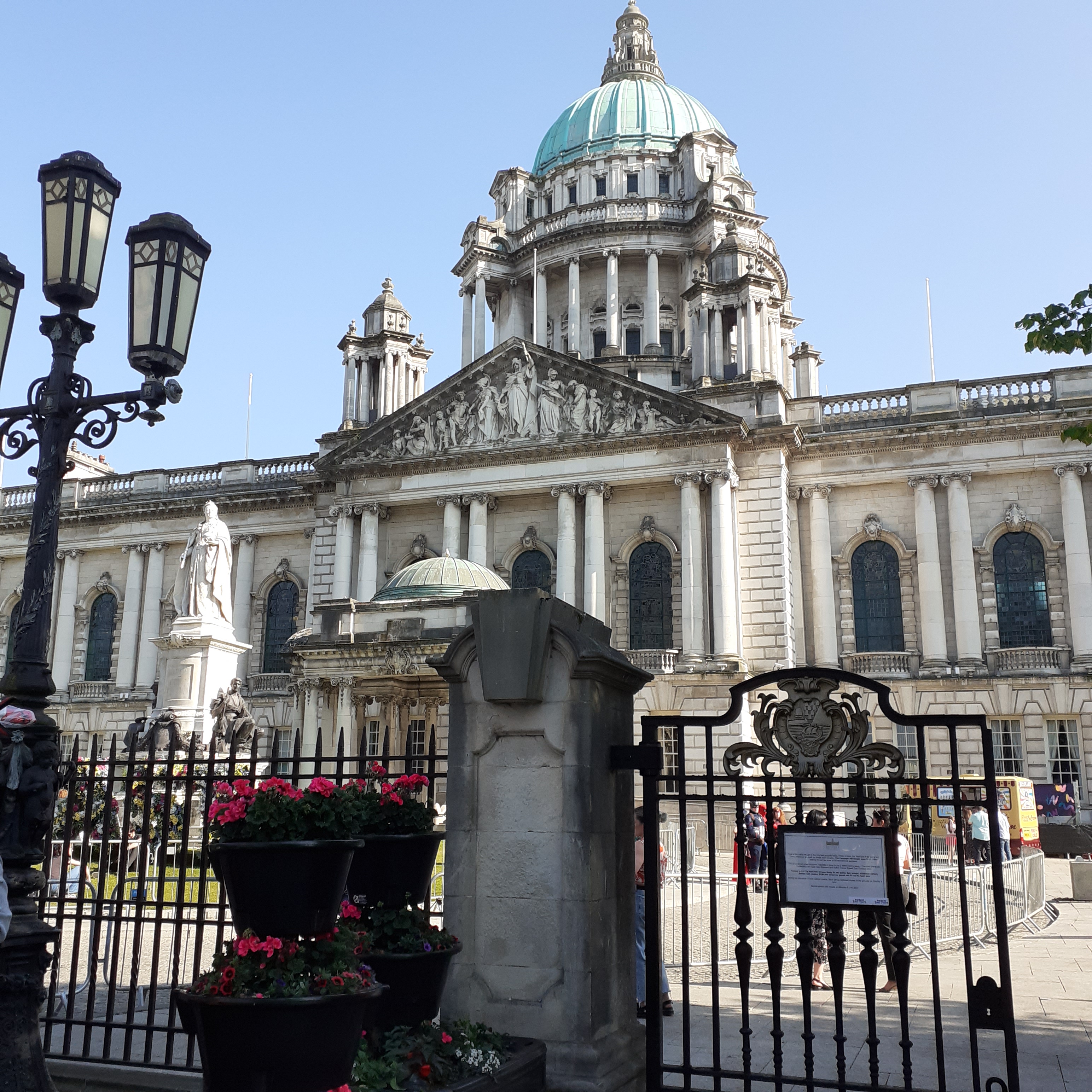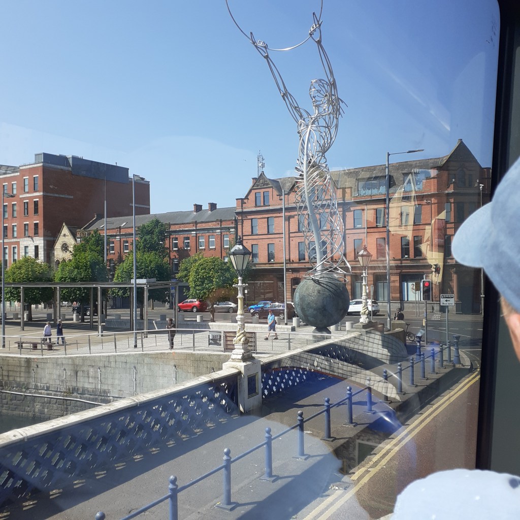Belfast is Ireland’s second city, and the capital of Northern Ireland. It is a two hour train ride from Dublin Connolly on the Enterprise; all going well. I was last here just over ten years ago, taking another jaunt north with my younger son to see the Belfast Giants ice hockey team at the Odyssey Arena. Images of the frozen north were amplified within the confines of the ice rink, and in truth were not dispelled in the great outdoors; but this time Belfast was caught in the embrace of a big blue sky, and it was sweltering.