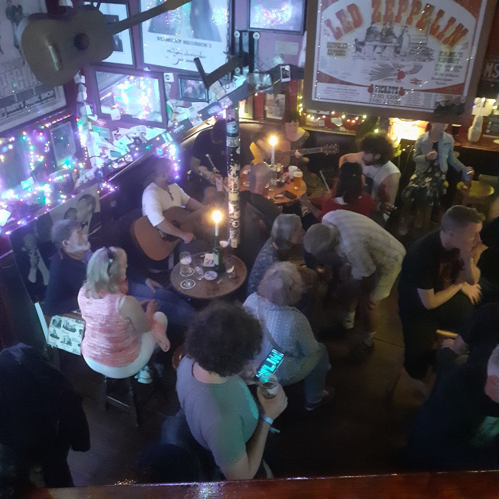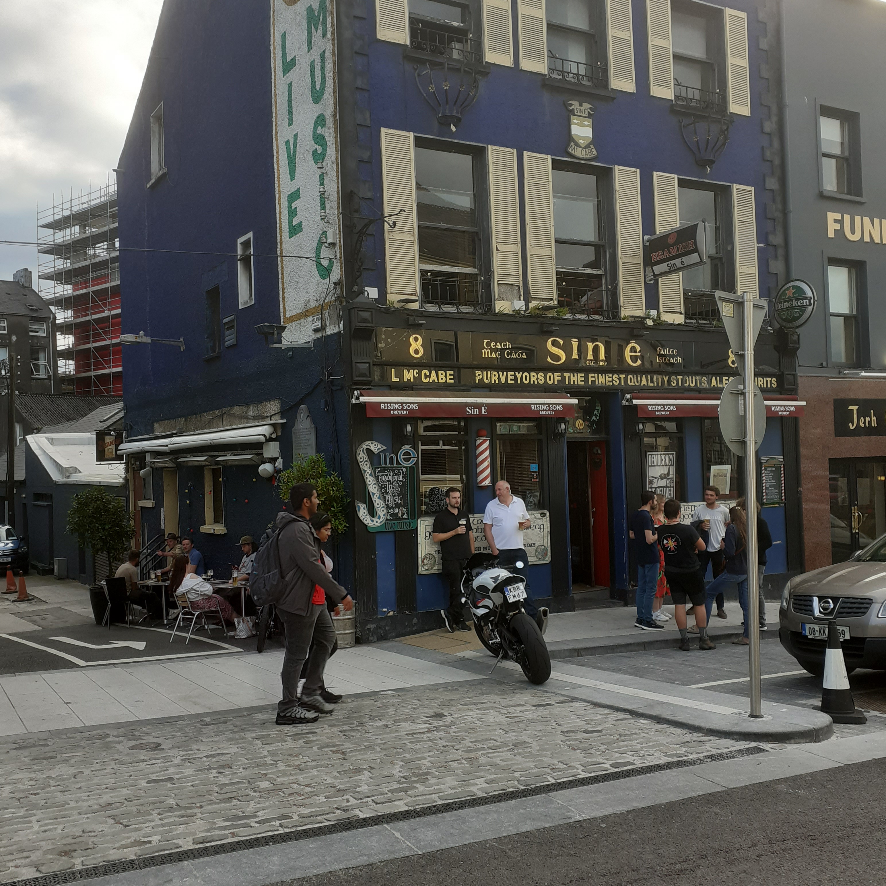 On the way I noticed one of Cork’s best loved bars. Sin É, Irish for that’s it. This is a busy spot with regular traditional and ballad music. The packed interior is a gem, and upstairs there’s a more reflective spot with candlelit tables where I grab a window seat. And thereby hangs a tale. The candles are not yet lit, and though on my ownio, I decide to light up for a little atmosphere. This attracted a tourist, German I think, who asked for a light for his own unlit candle. I obliged. Thus the light was spread troughout the world. I spent a happy half hour writing in my notebook and a few more moments reflection before heading off down the city centre. I got as far as the Oliver Plunkett, on the eponymous street, where outdoor seating allows for relaxed people watching. Looking for the notebook again, I find that it’s gone. It can only be back in Sin E, so I must return. The place is truly hopping, and I am none too optimistic approaching the upstairs table now occupied by a young woman. She has stowed my notebook on an adjacent shelf. It is a small thing of no great value, but I am delighted to be reunited with it again. Downstairs, I decide to celebrate with a pint. In an alcove, I take out a fistful of change and begin to count out the money required. Suddenly, the German tourist from before is at my shoulder. I will buy you a pint, he says, for earlier you gave me fire. Don’t you just love it. I had to laugh. I wasn’t sort of money, but had typically accumulated a lot of shrapnel and wanted to lighten the load. What goes around comes around. I see out the evening with pints and pleasant company. That’s Cork for ye; Sin É.