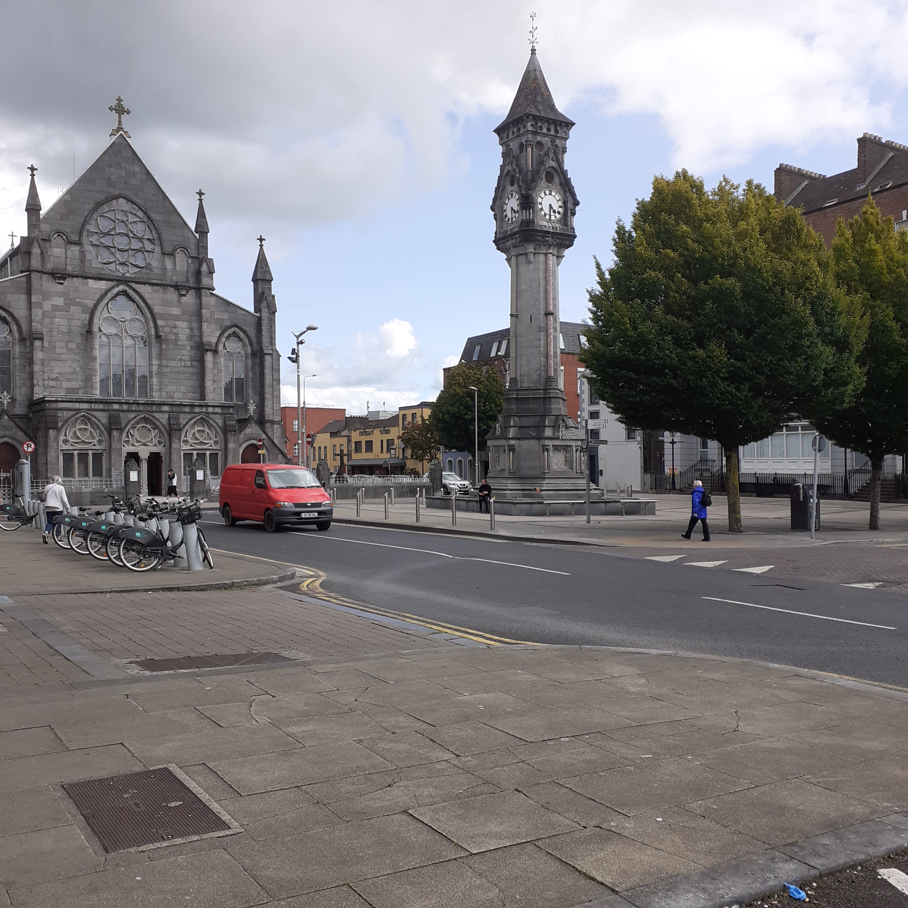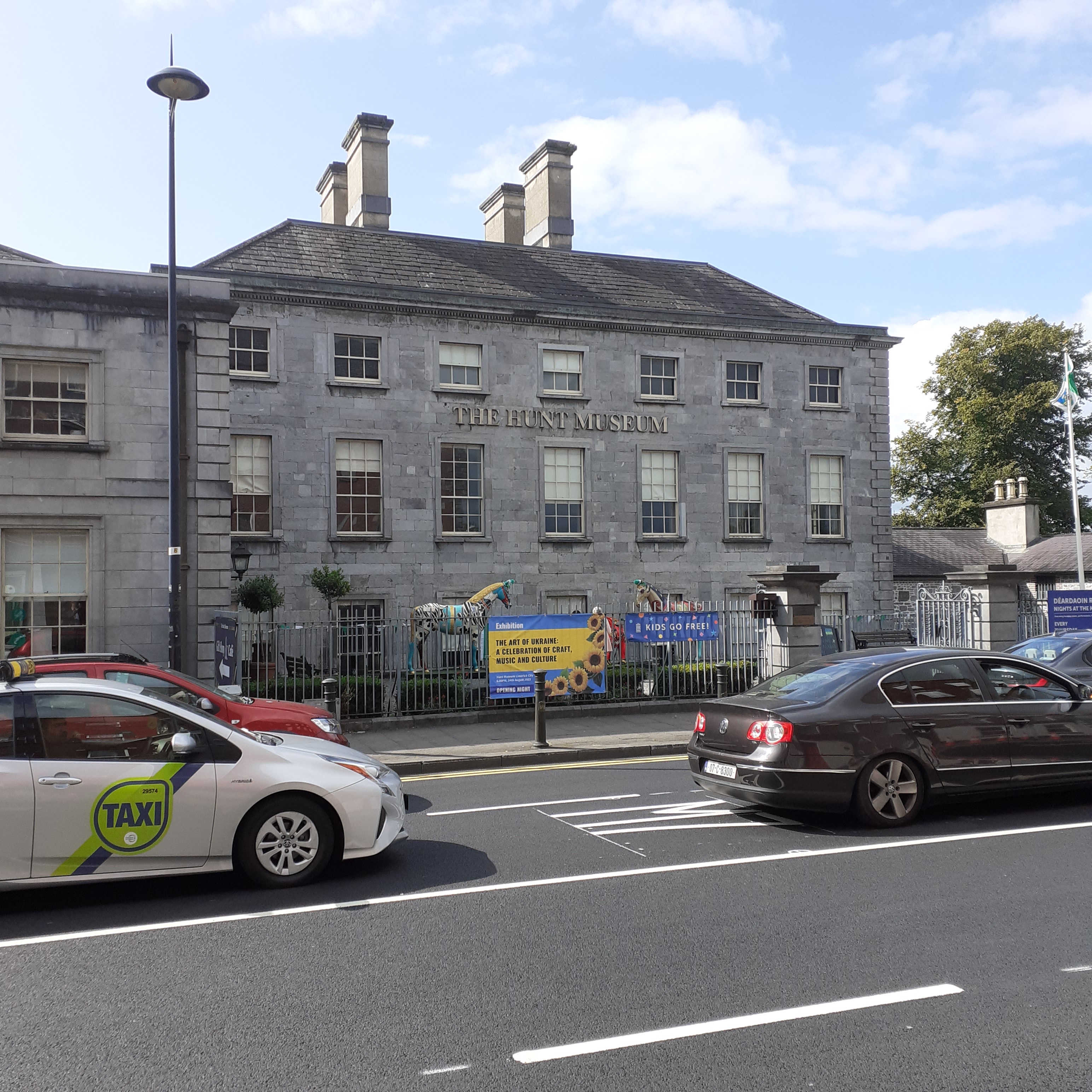 Across the river Irish Town, or the Old Quarter, occupies the south bank to your left. On the right is a pleasant riverside parkland, with the Hunt Museum prominent on the streetfront. The Hunt Museum was originally the Custom House, designed by Italian Davis Ducart. It’s a limestone Palladian building from 1765, three stories tall. The museum features the collection of John and Gertrude Hunt, housed in the current building since 1997. The Hunts collected collected art from neolithic Ireland to ancient Egypt, medieval Christian artefacts from Ireland and Europe. There’s also dresses by Sybil Connolly and work by Picasso, Renoir and Jack B Yeats. The Horse Outside art installation are fibreglass sculptures from 2010, painted by children and inspired by the Rubberbandits hit. They are the local comedy hip hop duo of Mr Chrome and Blindboy Boatclub.