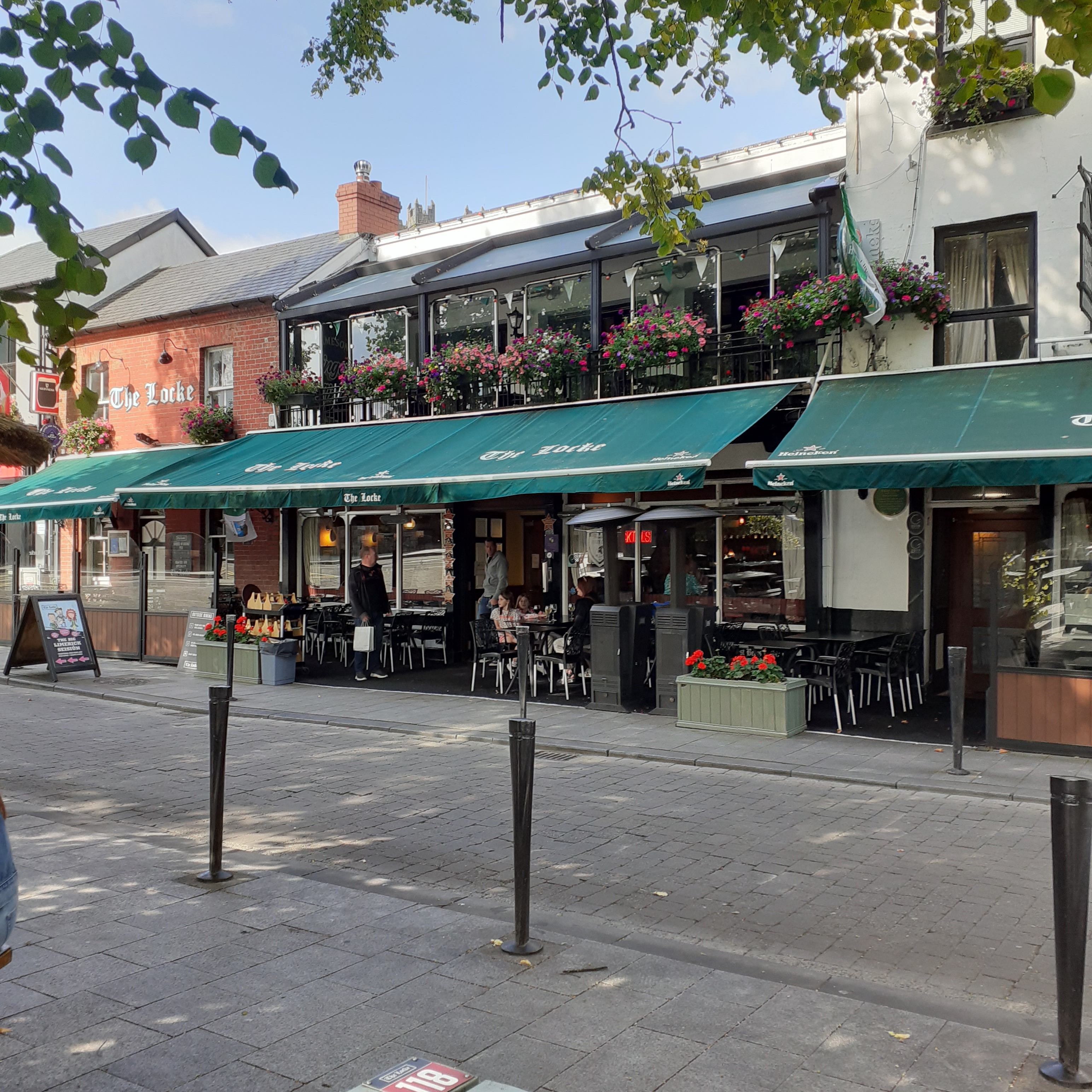 Vestiges of the Walls of Limerick, appear along busy Island Street, though Nicholas Street is more evocative of the ancient city. Left untouched by the modern development in the eighteenth century, the old city was gradually abandoned, and few buildings remain. Near the confluence of the Abbey and Shannon, just below the Cathedral gates, is the end of English Town. George’s Quay hugs the river bank, and here you’ll find the Locke Bar at the Bridge. The original pub site dates back three hundred years. There’s traditional music sessions and dancing every night. The lounge area is large, flooded with the late afternoon light. Outside, there’s a wide beer garden on the tree lined river banks. The garden often features summer barbecues, and good food fare is available throughout, including seafood, burgers and Irish Stew.