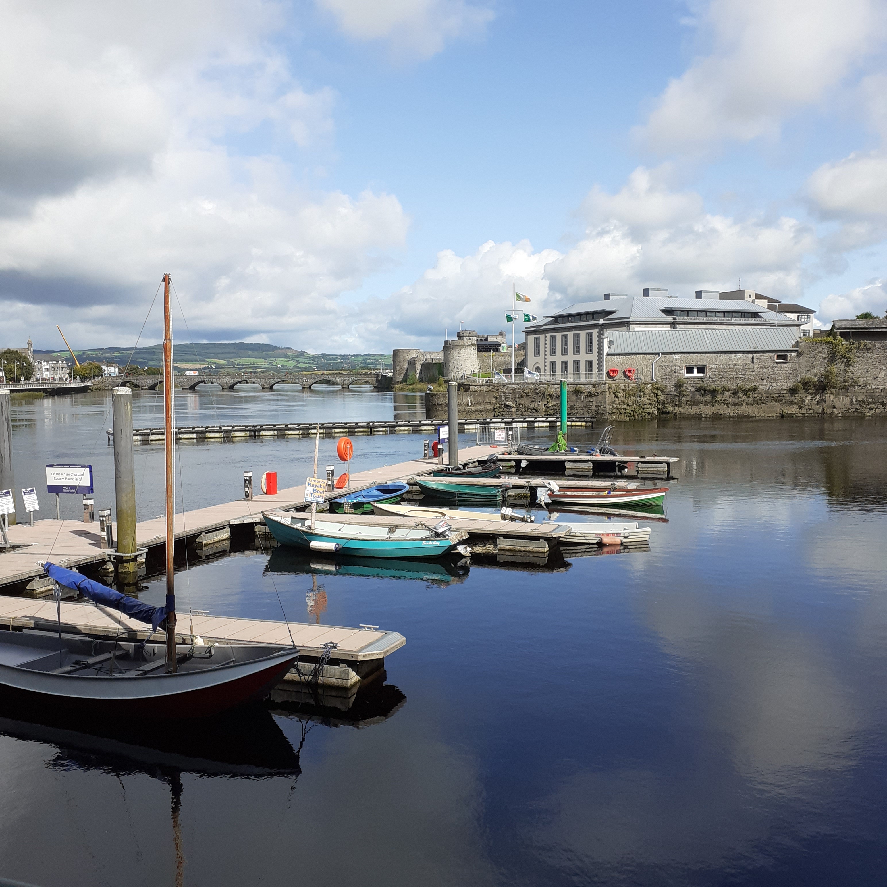 The Normans were keen to establish a power base here. King John’s Castle is one of the many established by that King in Ireland. Dublin was another, Trim and Carlingford also. Begun in 1200, it was completed a dozen years later and is today one of the best preserved Norman castles you’ll see. It is Limerick’s most renowned landmark. The modern reception area makes for an odd introduction to the traditional Norman style castle of a large courtyard surrounded by curtain walls. The massive gate house and three corner towers remain. The eastern wall is missing, occupied by the modernist visitor centre. This offers interactive exhibitions, while the courtyard is haunted by garrolous actors. Visitors can try their hand at ancient pursuits such as archery and fencing, but no, there’s no chance of actually killing anything. Weirdly, there was once a small modern housing estate within the walls until the end of the last century. What a strange address to have. Despite eight hundred years of often violent history, including the violence of unsympathetic urban planning, the castle is in a high state of repair.