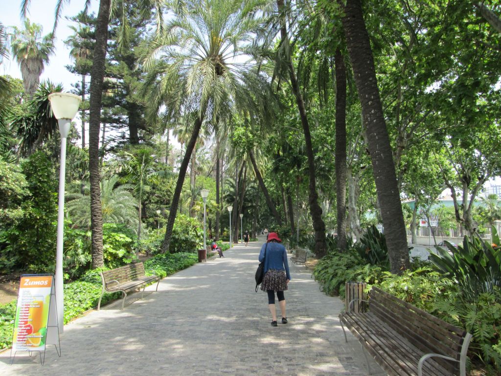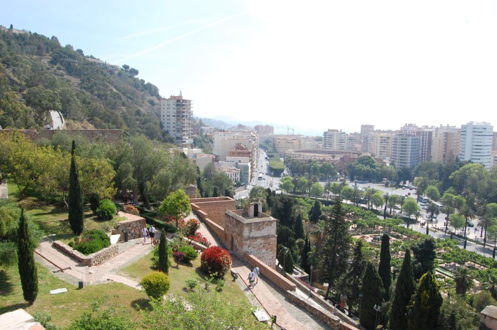 Overlooking the port, the hill of Gibralfar rises to the north.. An ancient ruined casle crowns the summit. Lower down, the citadel of Alcazaba, was built in the eleventh century within the walls of the Moorish city. Alcazaba is superbly maintained and we rise through a maze of alleyways a thousand years old, gardens and fountains emerging regularly. Gurgling water, sheltering trees and the scent of flowers mellow the near African harshness of the climate in high summer. It’s a good climb to the top, with spectacular views from the walls over the city and coast.
