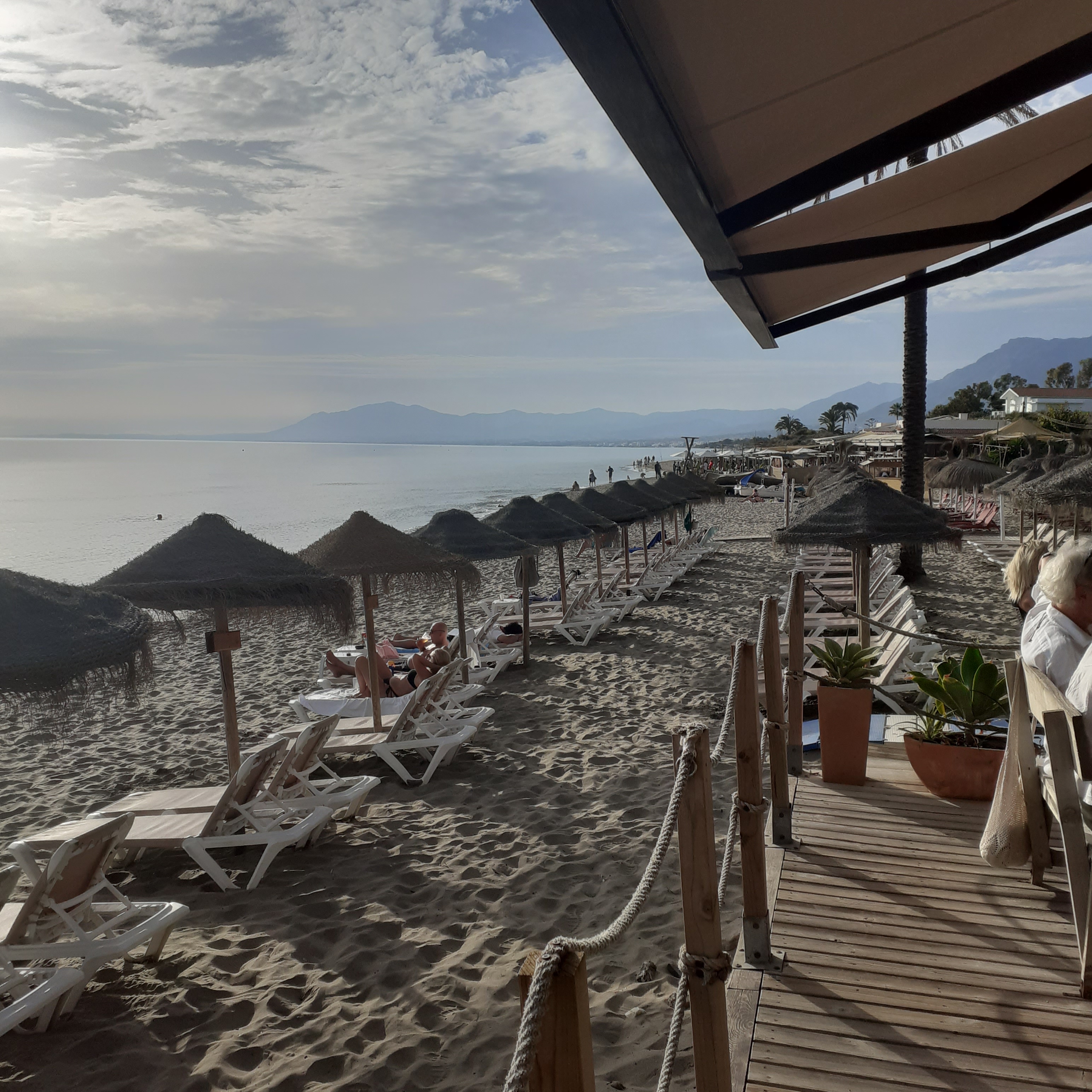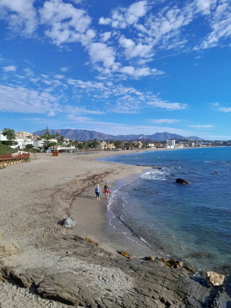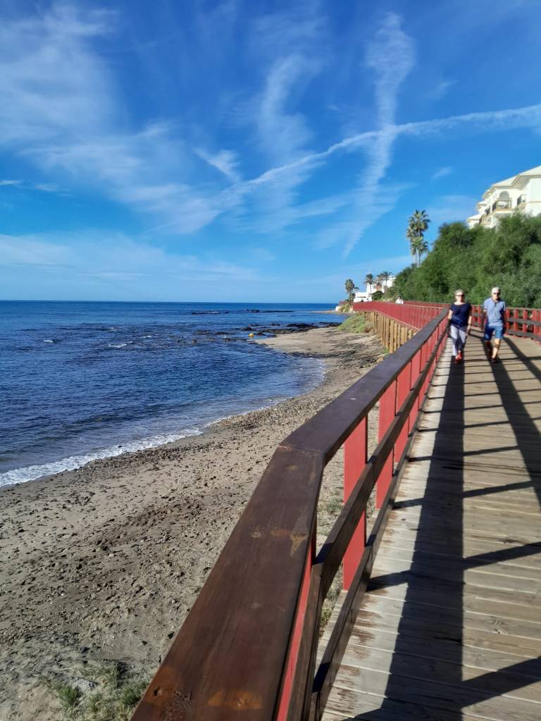 Marbella promenade stretches from the port for a further seven kilometres to Puerto Banus in the west. Puerto Banus marina, with its luxury yachts is an upmarket nightspot and includes, amongst other delights, O’Grady’s Irish Pub. There are plenty of opportunities for refreshment at this end of the boardwalk, and plenty of time, which seems to grow profusely in the sunshine of Andalusia. That day we took a bus back to base camp. We were helped by a lovely Norwegian couple who come here every year. And why not. Folk from frozen fjords and rain dirty valleys need some time to gaze at the actual heavens.