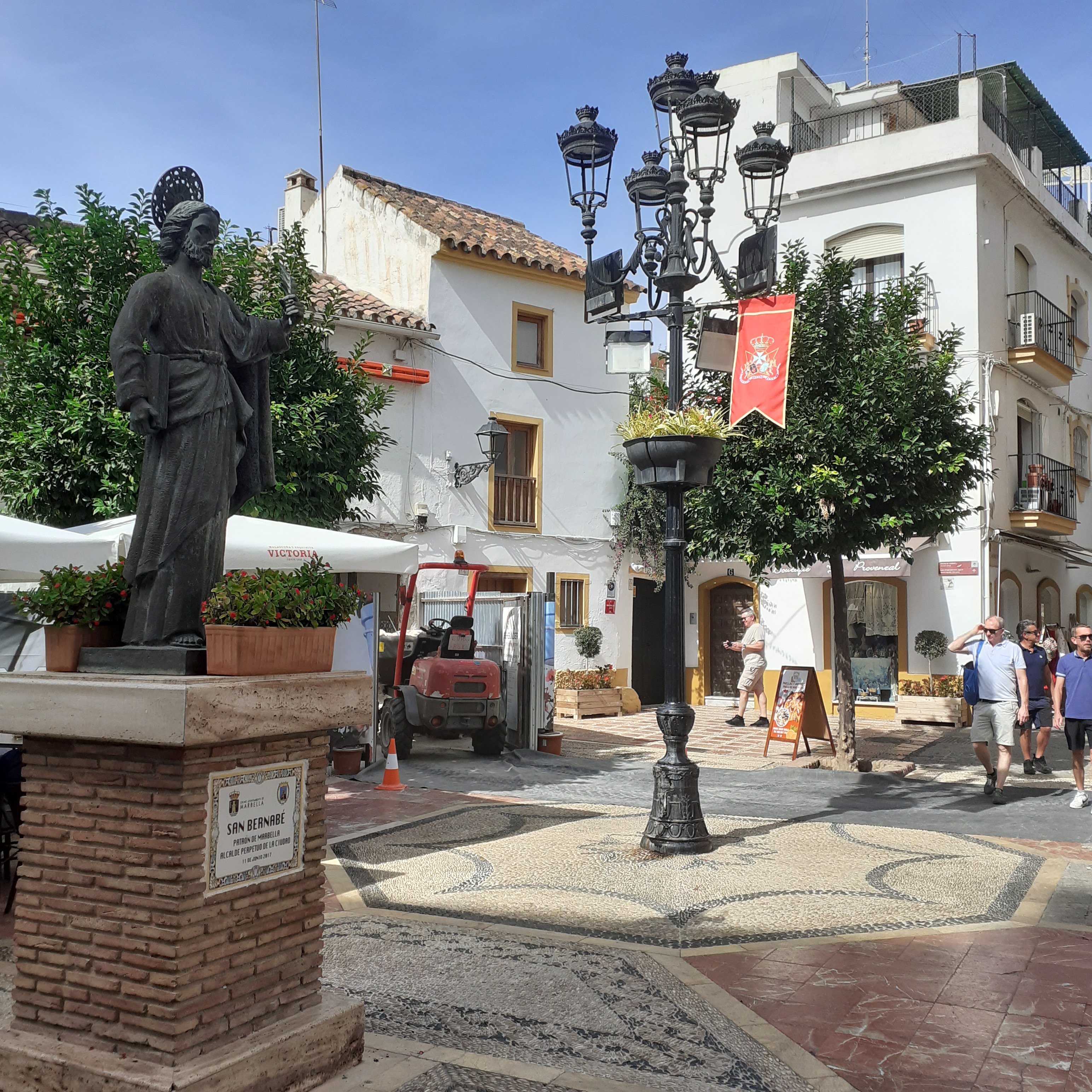 Heading further uphill the streets tunnel back to their medieval origins. The Castillo de Marbella, the remains of the Moorish Castle, lies to the north east of the square. From here, following the line of the walls back down to the modern commercial centre, we come to Plaza de la Iglesia with its statue of Saint Bernabe, the town’s patron saint. His festival is on the 11th June, ushering in a week of dancing and carousing in the Spanish way. Festivities are rarely remote from Marbella at any time though this, we hear, is particularly wild. Our ambitions for earthly delights are not particularly Bacchanalian today and we make do with an easygoing hour or two in Plaza Manuel Cantos, where the Irishman Pub and Luigi’s Italian Restaurant provide sufficient for our drinking and dining pleasure. Other soirees might include El Balcon de la Virgen and Patio Marbella in the labyrinth of the old town.