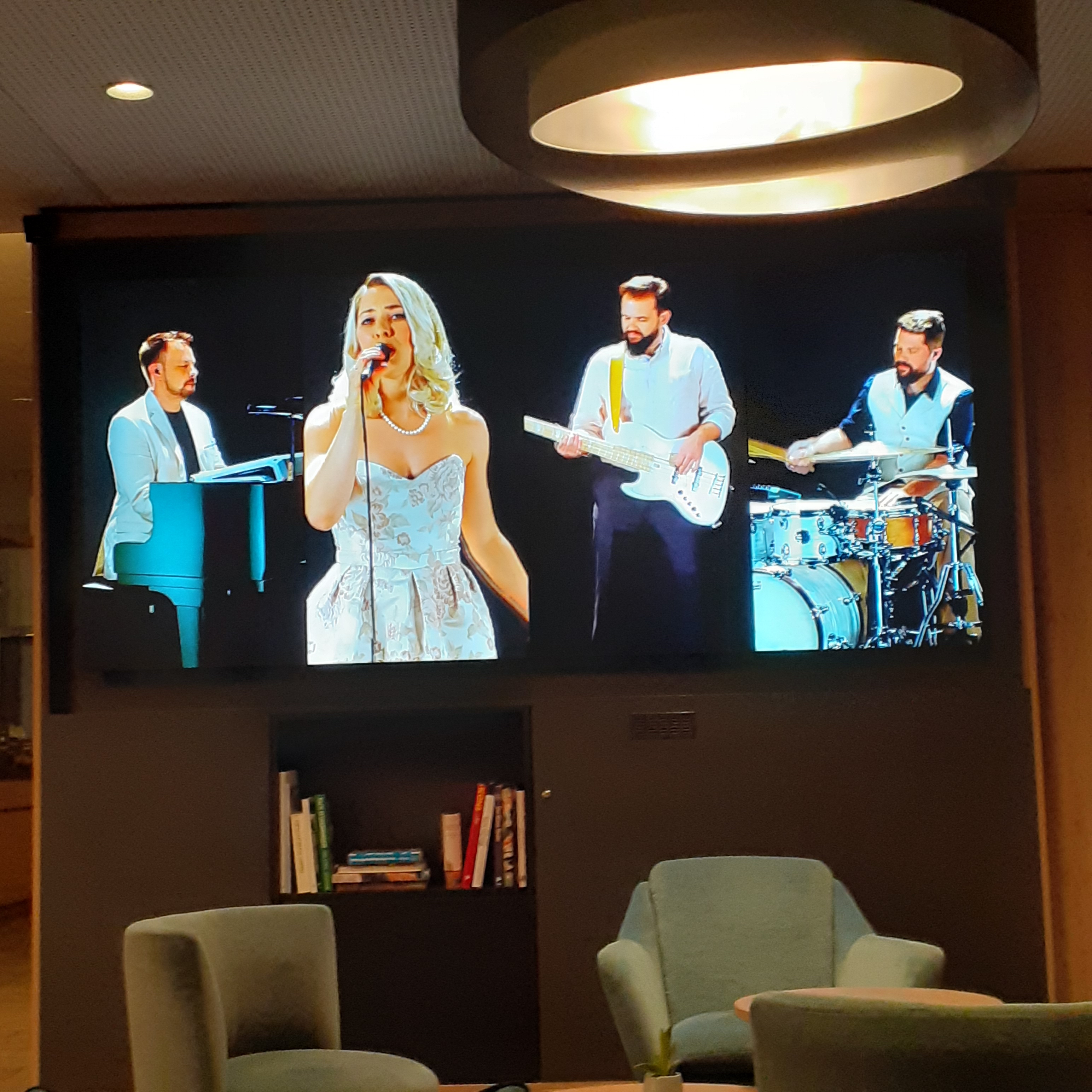 Finally I return to the Best Western for a relaxing drink in the hotel bar. Cillian, or Kilian, the barman keeps ‘em coming. It’s a good Irish name after all. A school in my hometown Bray being dedicated to the saint. He’s also venerated hereabouts in Bavaria. Meanwhile, a virtual band shimmers on the video wall. It’s smooth jazz rock, shades of Supply, Demand and (very attractive) Curves. I slip into the ambience.