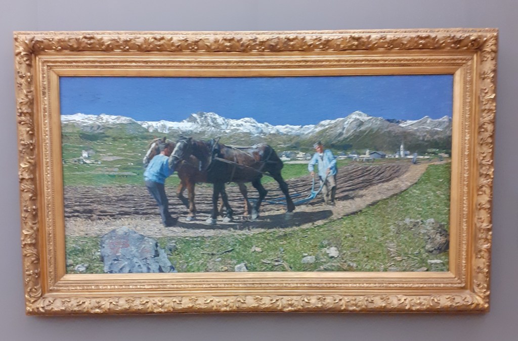 On my visit the Neue Pinakothek was, of course, closed. It is the same throughout Europe I’m afraid, where art museums of 18th and 19th century art are shut. This building was closed in 2019 and will not reopen before the end of the decade. A section of the Alte has been used to display a selection of work from the Neue under the title rom Turner to Van Gogh. Standouts include Manet on his boat, Sunflowers and a view of Arles from Van Gogh, waterlillies from Monet and Max Lieberman’s sundrenched beergardens. New to me was Giovanni Sagatini with a large panoramic landscape title Ploughing from the 1890s. Snow capped mountains at last! It made my trip.