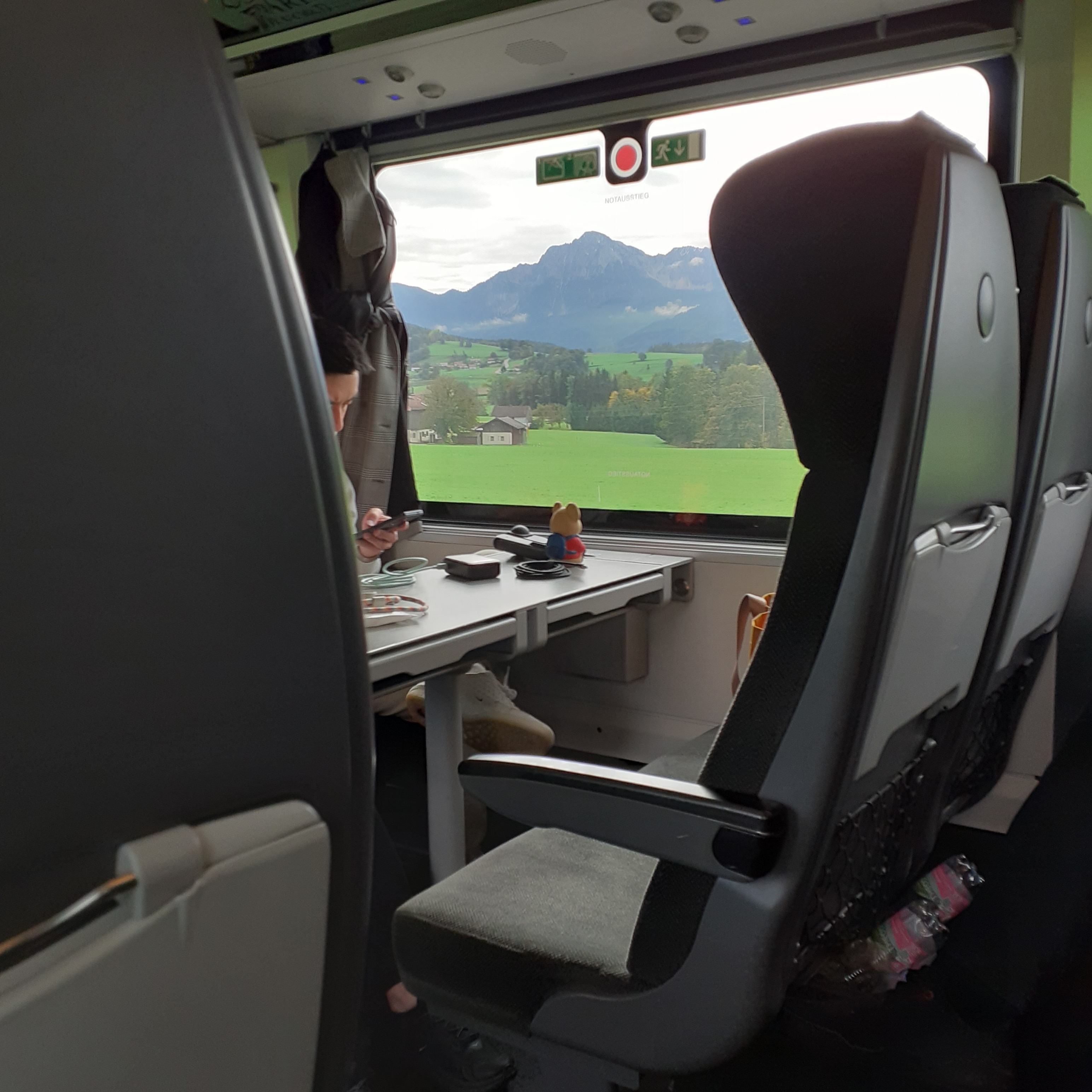 The curtain of cloud lifts as I leave Salzburg. At last I get to see the sublime world of Alpine life and scenery. I could certainly skip through that swinging my guitar case and singing in a high voice. But, probably better not. The train journey is a magical collage of jagged blue peaks and melting green fields. There is sunshine too. At Munich Hauptbanhof I navigate the crowds and make my connection to Arabellapark.
