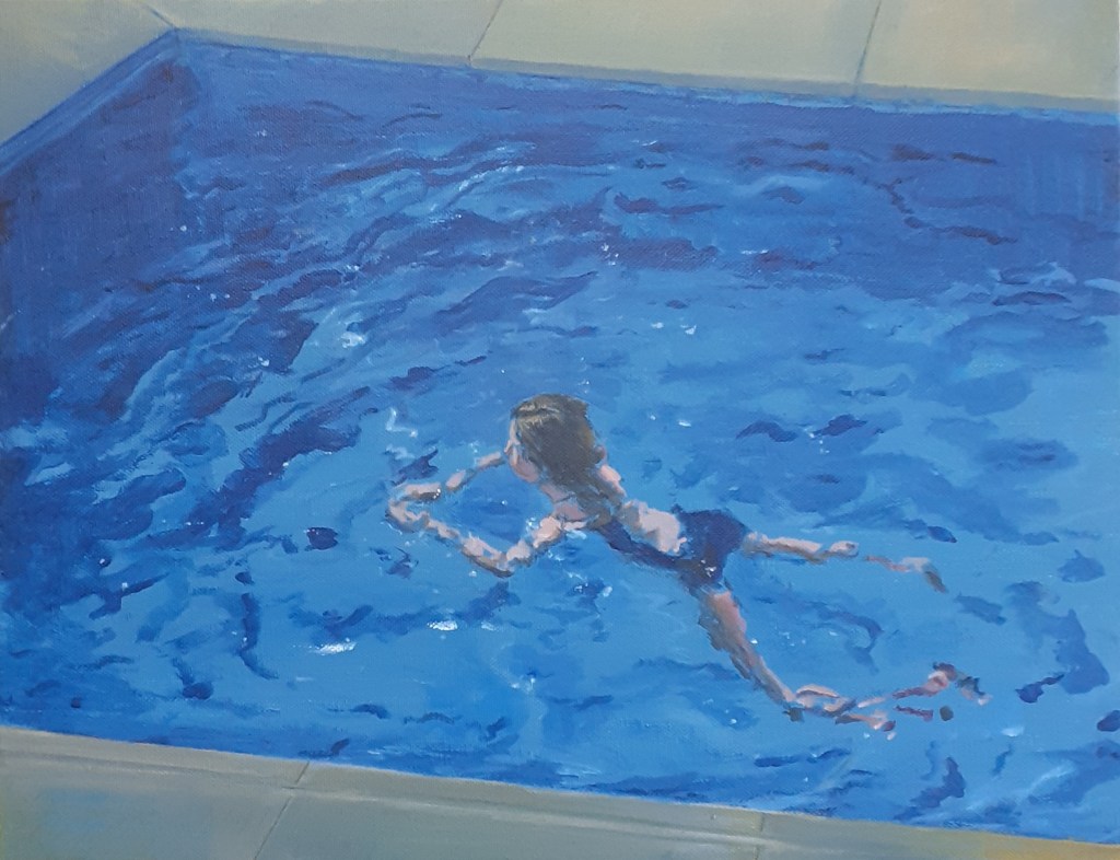 Scribbling is allowed, in whatever form I decide to record worthwhile memories. Some painting or prose, or both, will emerge. This acrylic is a moment captured last Spring in Elviria, just a few kilometres east of Marbella. That rippling blue rectangle is a familiar motif in Hockney’s Californian paintings and sum up that mood of ecstatic indolence at the heart of swimming pool culture. To be sure. There are a couple of musical equivalents; though less than one might suppose. Kate and Anna McGarrigle’s rendition of Loudon Wainwright’s The Singing Song is one and Nightswimming by REM another, if not quite the right time of day. Closest is Dire Straits, with Mark Knopfler’s Twisting by the Pool. A rare fun rocker from the bluesy Geordies, it is a retro take on the Spanish holiday boom for sun starved Britons in the early sixties. The song doesn’t appear on any of the band’s studio albums, and first surfaced as a single 1983. It was a firm favourite as an encore, as I witnessed at Stadium gig in Dublin the early eighties.