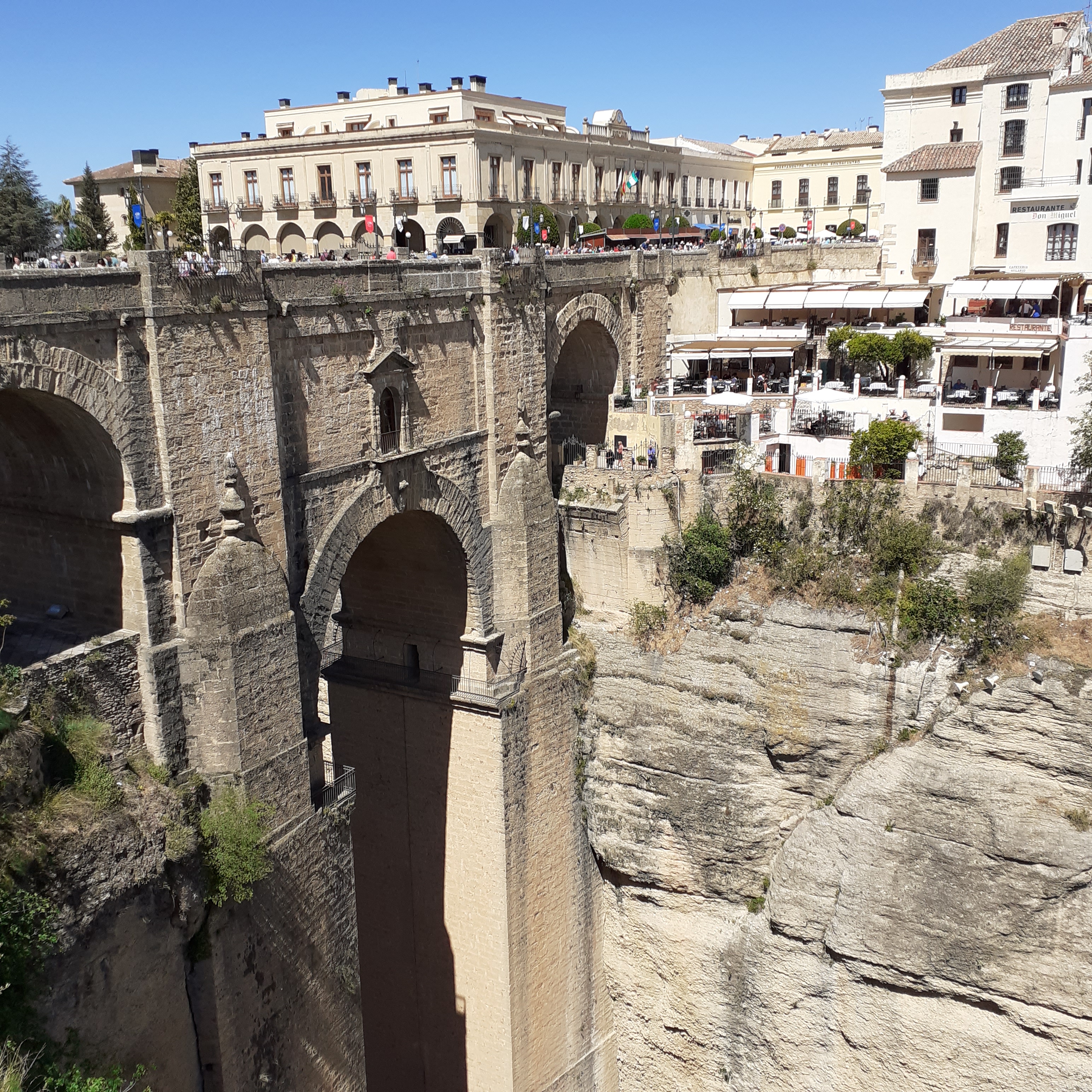 Towards the mid eighteenth century the Puente Nuevo was proposed. The first attempt lasted less than a decade before collapsing into the abyss and taking fifty unfortunate souls with it. It fell to architect Jose Martin de Aldehuela to design one that would last. Built between 1759 and 1793, it spans the seventy metre gap with three arches and rises a hundred metres above the valley floor. There is a chamber above the central arch which came into use as a prison. There are fearsome tales of prisoners being thrown to their deaths through the small window during the Civil War, and this has become embedded in legend. More happily, the place subsequently became a tavern and now houses a small museum dedicated to the bridge’s history.