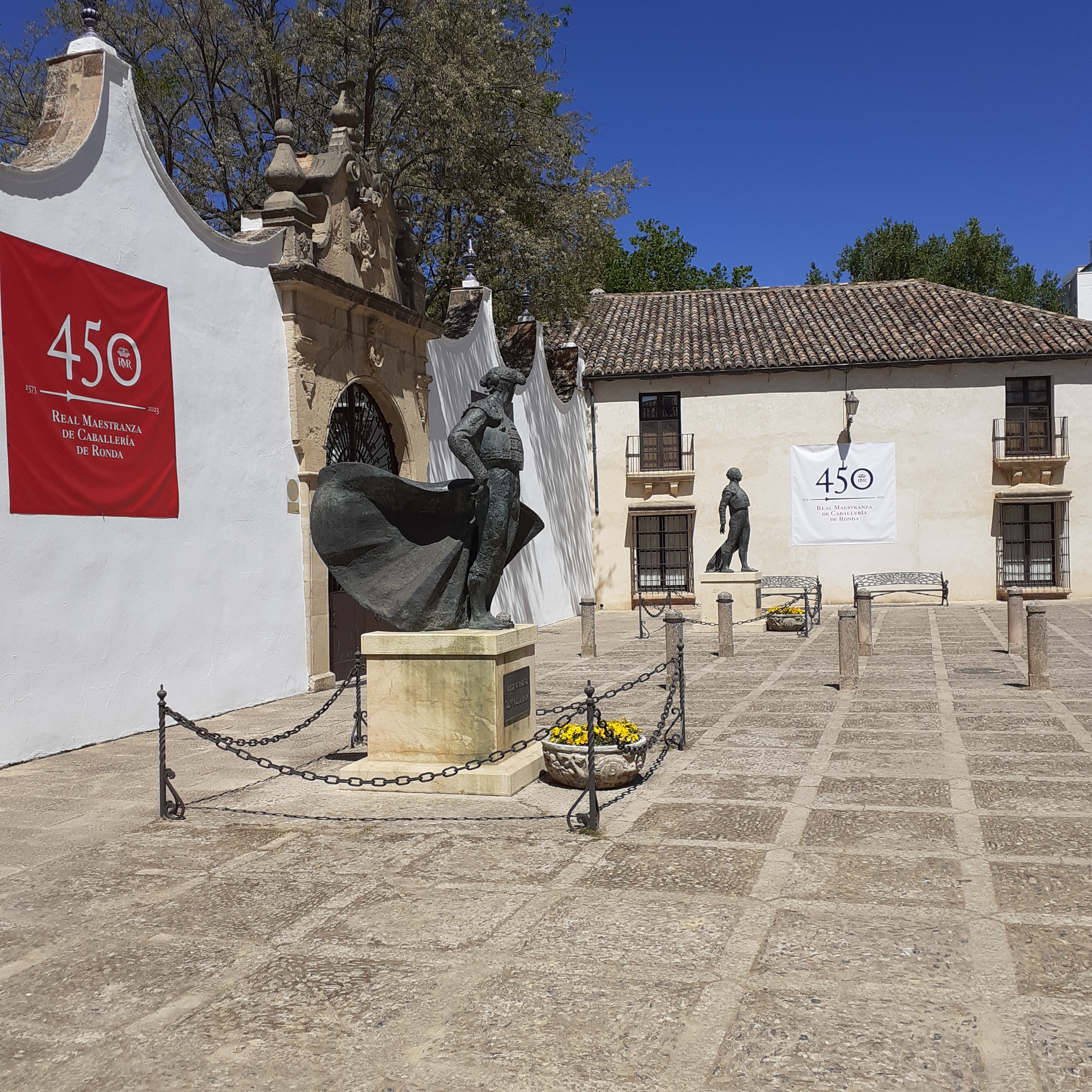 Crossing the bridge can’t but give you the illusion of being poised on a tightrope above eternity. On the north side there’s the solid, bustling centre of a more modern town. Mercadillo, as the name suggests, is the commercial centre of Ronda. To our left is the Plaza de Toros, one of the most iconic bullrings in Spain. It is amongst the oldest bullrings, built in stone in 1784 and designed by the same architect as the Puente Nuevo, Aldehuela. The ring itself is the largest, although the arena itself is small with only five thousand seats. These are all covered within the two level colonaded stand. The development of bullfighting from ritualised slaughter to cultural artform happened here. The Romero family were the leading bullfighting dynasty of the time. It was grandson, Pedro Romero, who perfected the use of the cape and sword, and the modern dramatic tableau was established.
