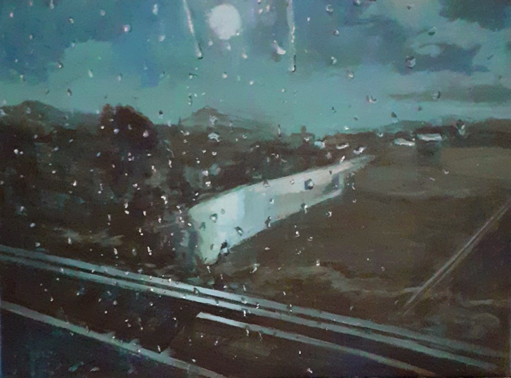 The Hunt Museum Limerick hold their first Open Submissions Exhibition between Friday 5th December 2025 and Saturday 28th February 2026. I am delighted to have been chosen for the exhibition. My painting, Lovers on a Train, is taken from a train trip between Dublin, Cork and Limerick. I noticed the couple sitting across from me were an island unto themselves. Touring Ireland, their purchases spread between them on the table, while they were absorbed in their screens. So, the tableau involves a still life, a classical composition– like Venus and Mars, and a landscape whizzing by beyond the window. The perfect composition for me. I like to capture the moment to make a visual short story in a particular time and space. People together and all alone; in trains, bars, cafes and cars. I enjoy doing it and hope that others enjoy looking at it. I’m looking forward to heading back down to Limerick. By train, of course.