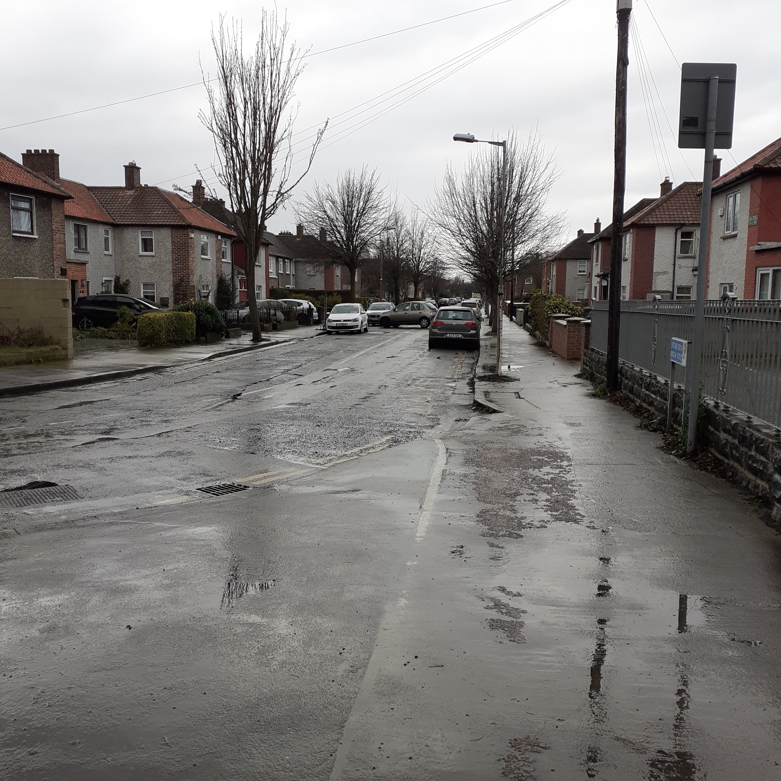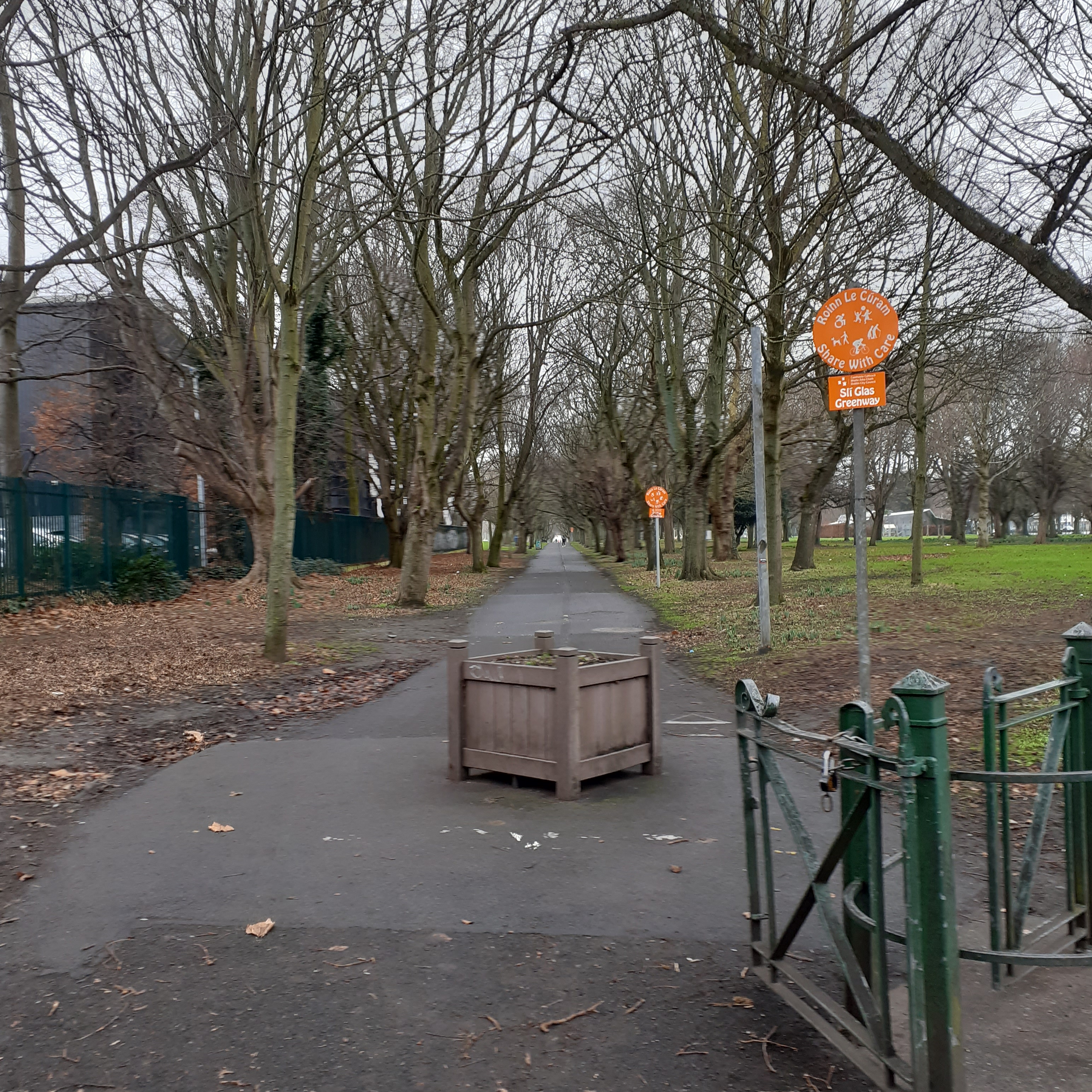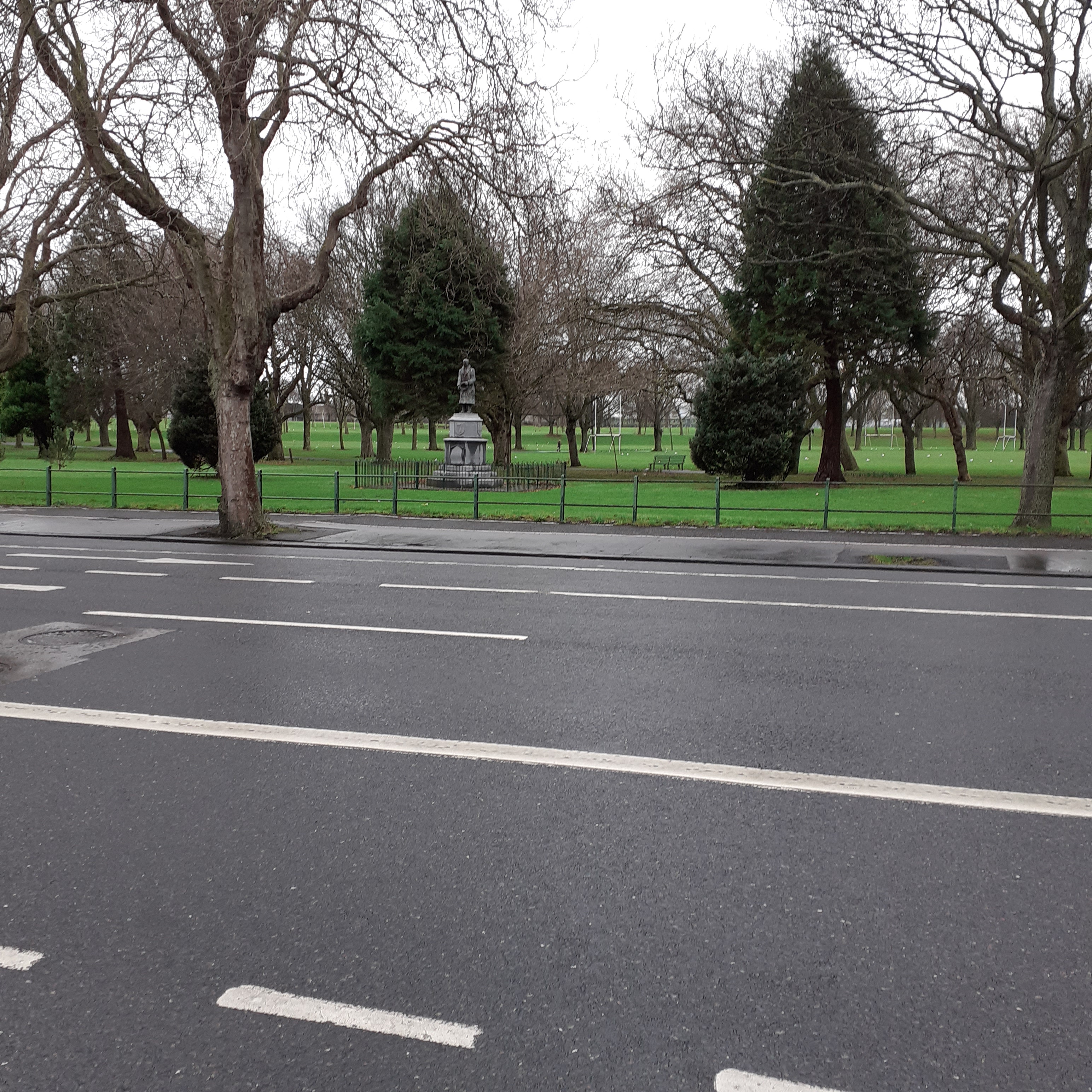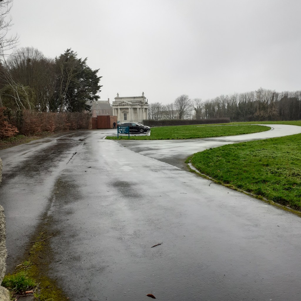 Leaving behind the Tolka River, the Main Road curves around Fairview Park. It’s a welcome stretch of greenery after the urban drear of North Strand. The park was reclaimed from tidal mudflats in the 1920s as the hinterland was being developed into suburbia. Tree lined walks are formally laid out, effectively masking off the railway line. Nearer the road, there’s a skatepark and a children’s playground. Beyond the tracks there are all weather pitches for Gaelic and Soccer.