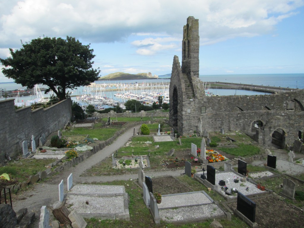 At the eastern end of the waterfront, the road rises towards the town centre by way of Abbey Street. St Mary’s Abbey and its graveyard commands the height above the Harbour. It was first established by Sitric Silkenbreard, King of Dublin, in 1042. In 1235 the parish church moved to St. Mary’s from the island, saving the locals from yet more boat trips on their day of rest. The present church dates back to late fourteenth century.
