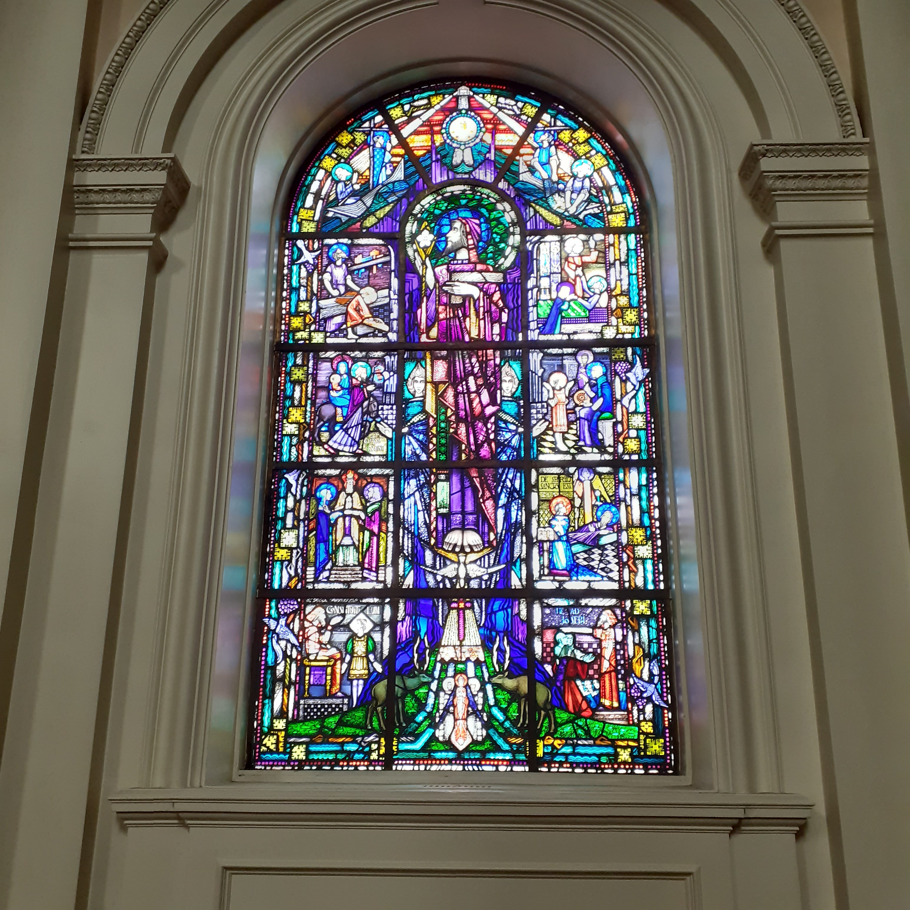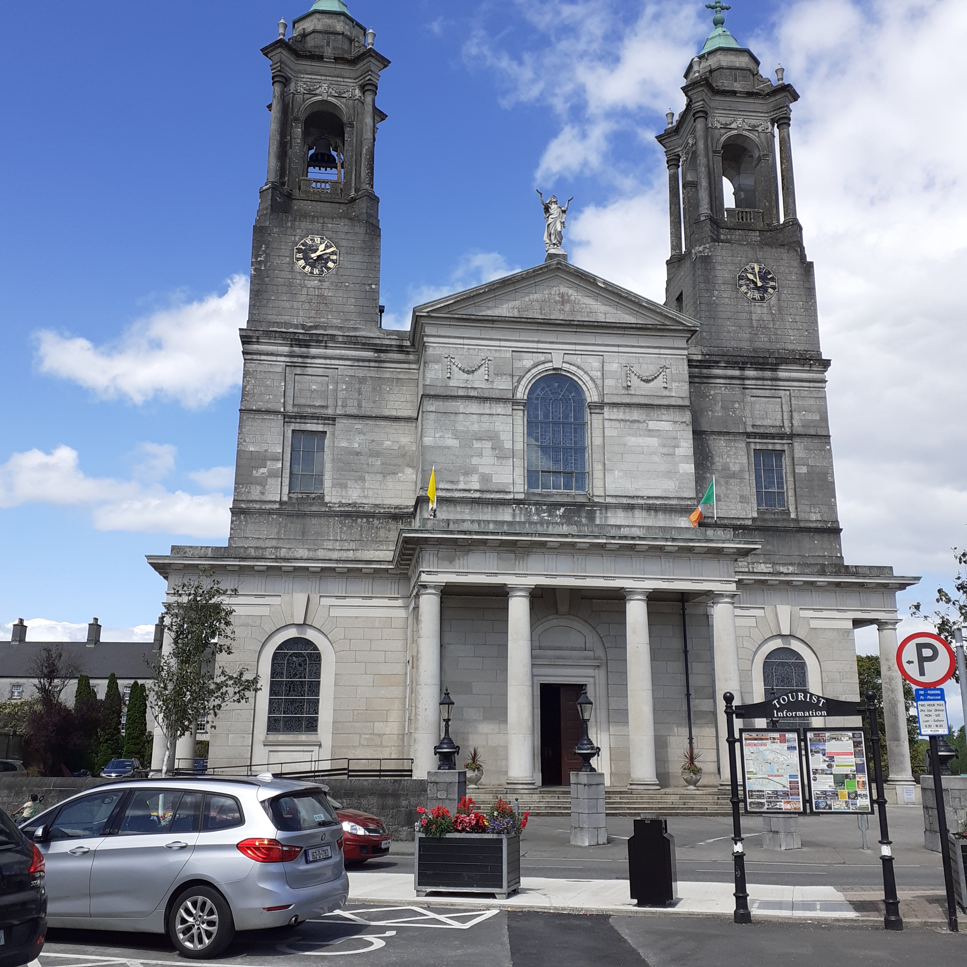 Saints Peter and Paul’s Church is an impressive Athlone landmark on the West bank. Built in the 1930s in the Baroque Revival style by architect Ralph Byrne. The neo classical entrance is framed by twin stepped belltowers and the church is topped with a central copper clad dome. Inside are five stained glass windows from the Harry Clarke studio, made by Richard King after Clarke died in 1931. Adjacent is the Luan Art Gallery, a publicly owned contemporary gallery hugging the western bank of the Shannon below street level.
