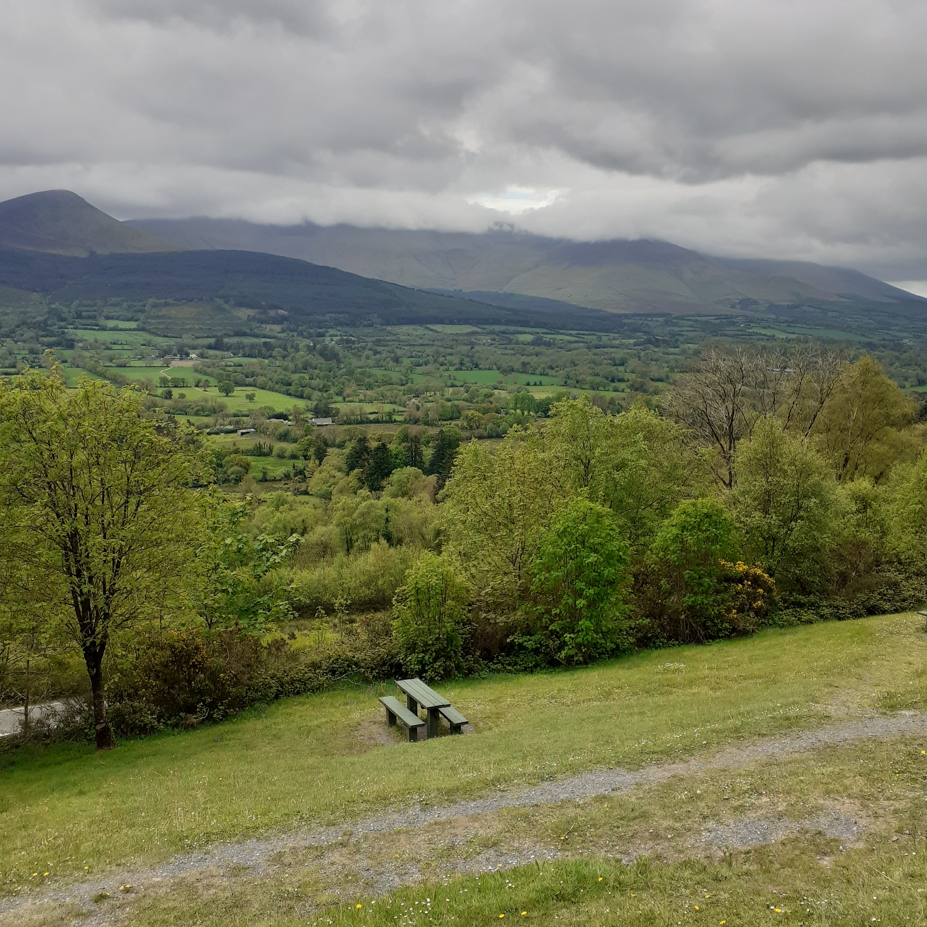 We took the trail from the statue of Christ the King heading uphill through Bansha Woods with fabulous panoramic views across the county rewarding us at the summit. Tipperary town is visible in the middle distance. We make downhill through rushing streams and forest paths. It’s well marked and you won’t go astray. There’s a picnic area near the statue where you can enjoy the scenery in a more leisurely fashion