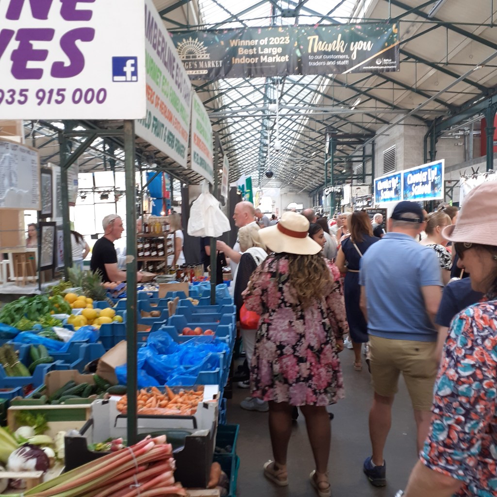 The first stop was at St George’s Market on May Street, close to the Waterfront. This is an attractive redbrick Victorian Market from the end of the nineteenth century. Enter through the main archway into a hive of trading activity with hundreds of stalls selling books, clothes, art, antiques, hot food and snacks from friday through to sunday. The friday market dates back to the city’s formation in 1604, with fruit and veg, antiques, crafts, clothes and books. Saturday devotes itself to being specifically a food and craft fair, then sunday brings both elements together with live music thrown in. St George’s Market doubles as a music and arts venue with events ranging fron the World Irish Dance Championship to Deep Purple.