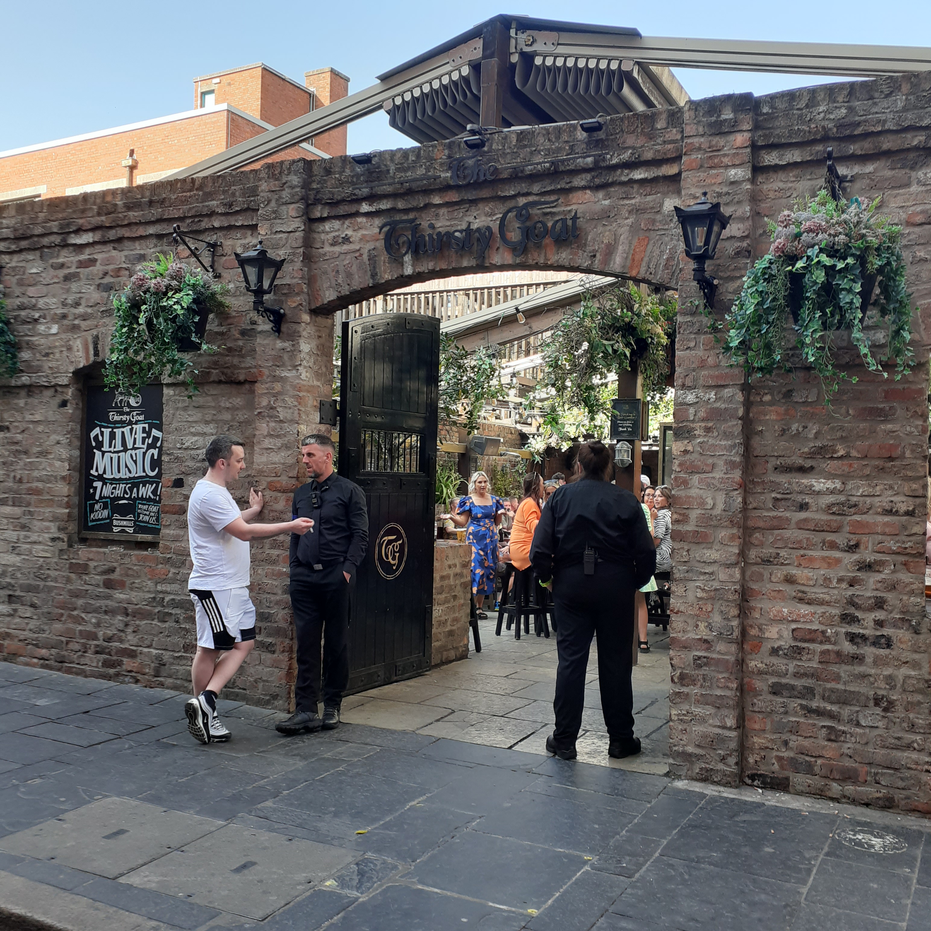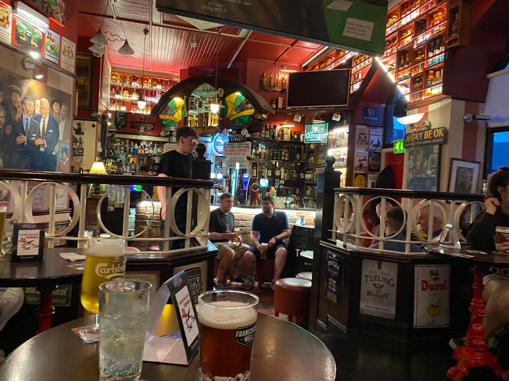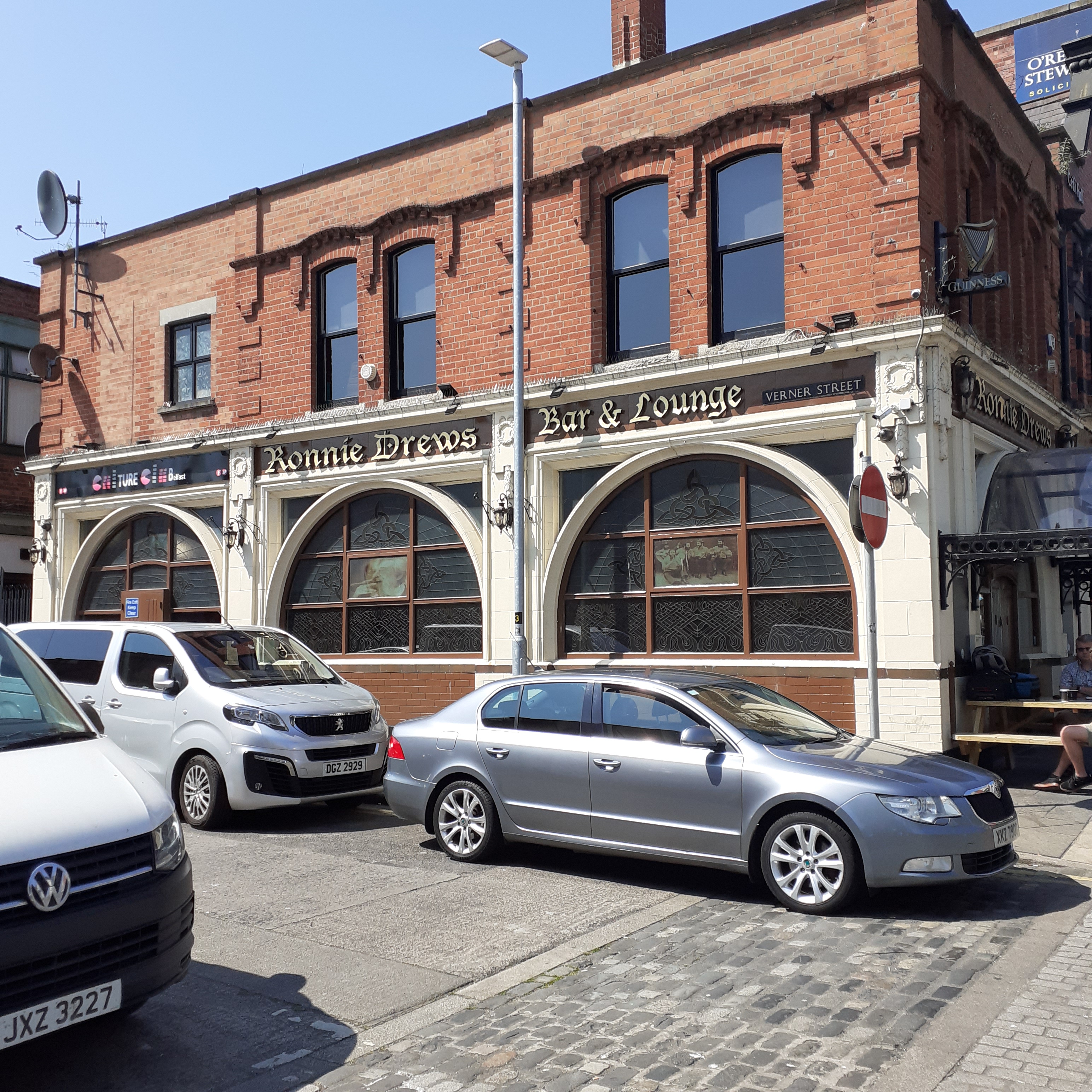 Next door is a pub that honours a singer of my own city, Ronnie Drew. It’s disconcerting to see his face around here, but consoling. Born in Dun Laoghaire in 1934, he founded his own group with Luke Kelly and others. The Dubliners first played in O’Donoghue’s in Dublin’s Merrion Row, a favourite haunt of mine. It’s good to see them commemorated in Ireland’s second city. Ronnie Drew’s is an ornate old style bar from the 1920s, with five large snugs along the huge arched windows at the front. Once called McGettigan’s, it was renamed for Drew following his death in 2008