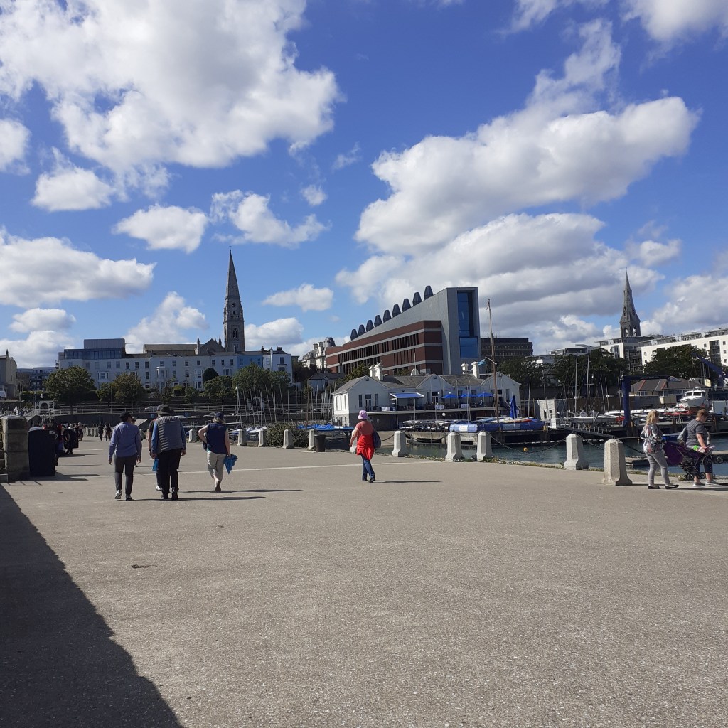 Dun Laoghaire harbour was opened in 1820 by King George IV. The growing town became Kingstown, changed from Dun Leary, Leary’s Fort. When completed in 1842, it was the largest manmade harbour in Europe. In 1824 it acquired the Mail Boat service which had previously used Howth. The ferry to Liverpool continued to operate until 2014. Large cruise ships do visit, often mooring in deeper water outside the harbour. Though it once had an extensive fishing fleet, this was overtaken by Howth as the designated fishing port.