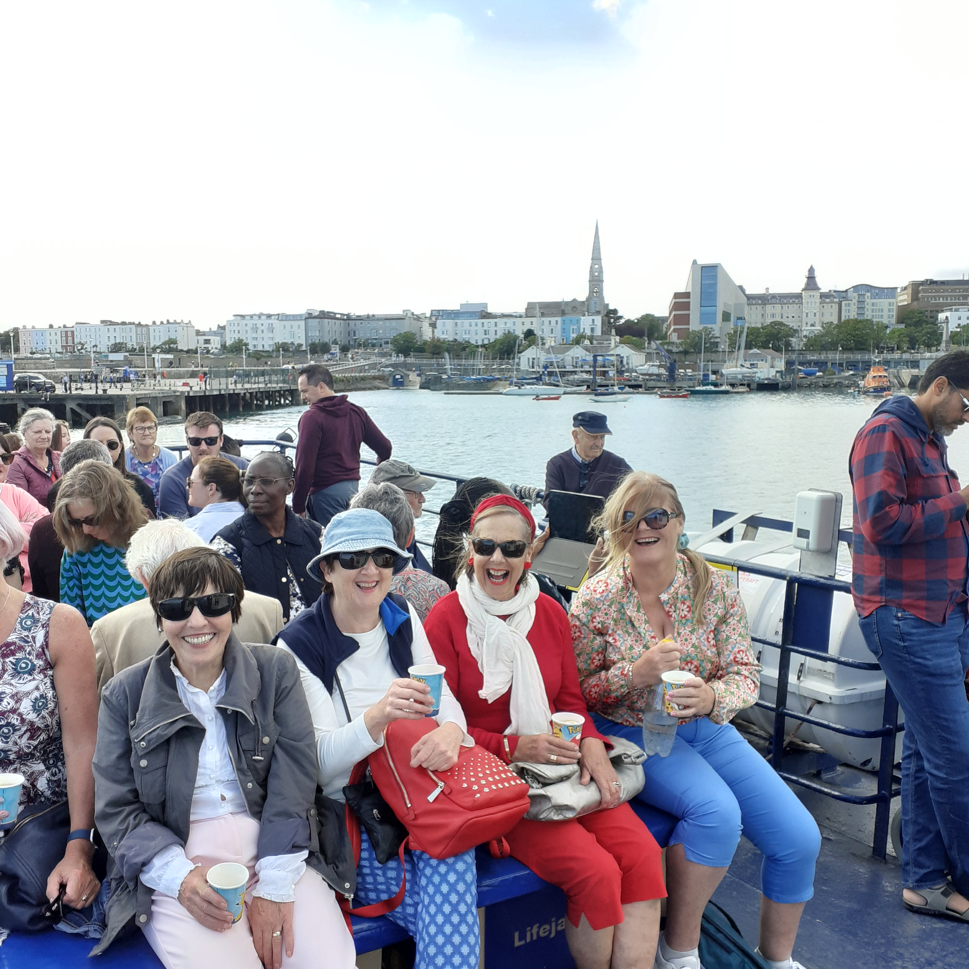 The St Bridget holds about a hundred passengers. Dublin Bay Cruises operate the service and other cruises around the bay. It is run by the Garrihy family, who also operate the Doolin to Aran ferry off the west coast of Clare. The open deck was well taken when we boarded with the passengers in high spirits. A friendly crewman directed us to a handy seat near the prow. A group of ladies on a day out toasted me as I took photos on the open deck. It’s an hour long cruise with an occasional commentary on the sights of interest.