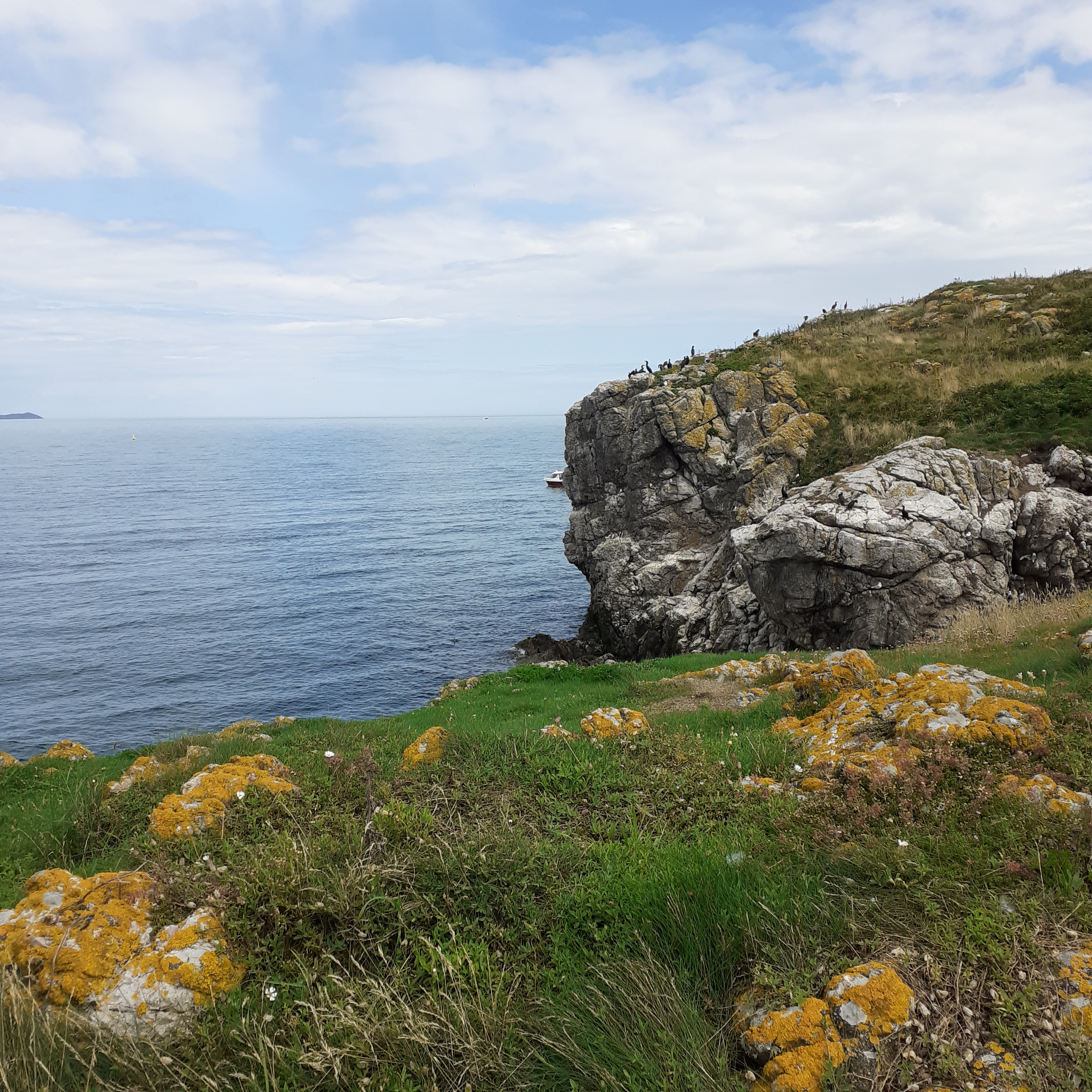 We transfer to a smaller craft for landing. It’s surprising how much larger the island seems when you set foot on it. Although several disembarked, we were quickly alone. We made for higher ground. It’s a good climb to the top and, once elevated, you get that giddy feeling of being marooned on a small island. We attempted to scale the heights but this old goat wasn’t as sure-footed as of yore. I nearly took the fast route down to the beach. The weather was good for our visit, though not exactly desert island disc good. There are beaches and coves, wonderful views, cliffs and plenty of birds. The enthusiast can search for guillemots, razorbills, kittiwakes, cormorants, puffins, gannets and gulls. Remember, this is their territory, and they know it.
