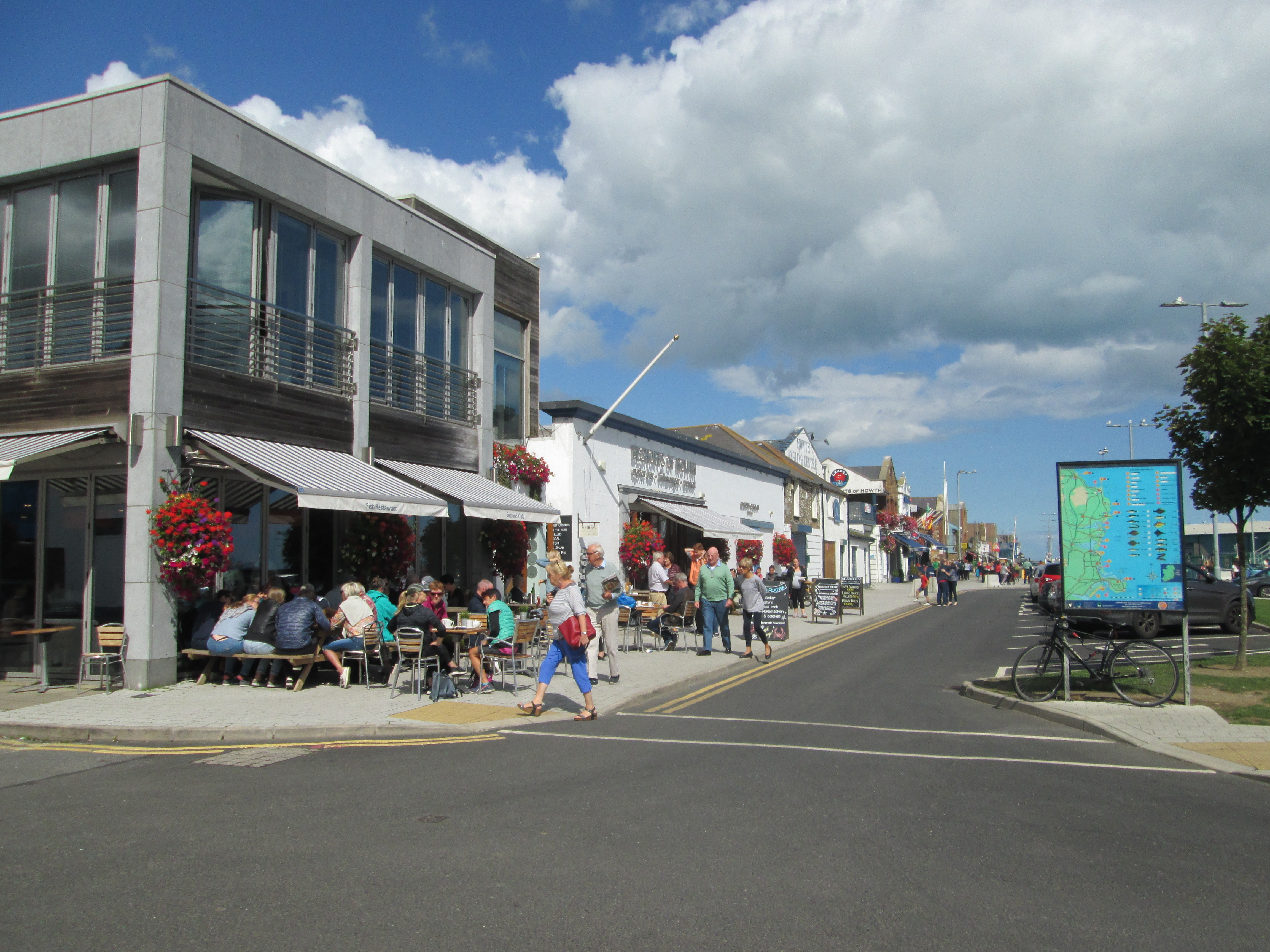 Blinking into the sunlight at the station, some tumbleweed blowing past the entrance, it was two short flights of steps down to the Bloody Stream. This is a traditional Irish Bar with a restaurant serving seafood and other popular mains. There’s a mediterranean style covered terrace to the side, a sun terrace in front and the cosy interior has open fires and live music in the evenings. The sunken terrace is a pleasant place to bask and sip a cool beer. A father and son nearby discuss the weather, an age old Irish topic. Do you think you can stand this heat, da? the son asks with some irony. The elderly gent is of the opinion that media coverage is more science fiction than science. All agree that the ill effects of global warming are best kept at bay by frequent stops for cool beer.