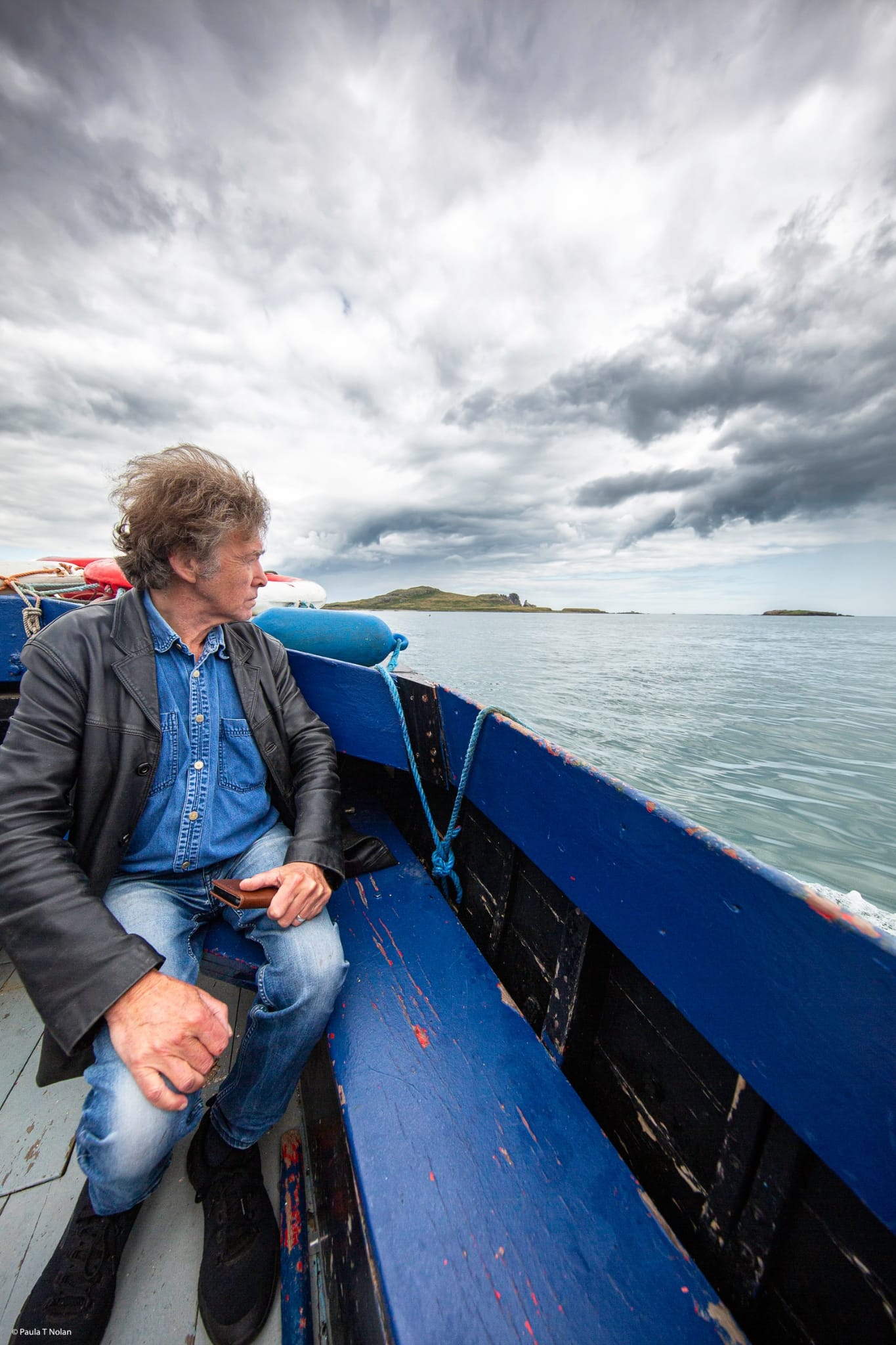The sun is shining, the wind is blowing, and Ireland’s Eye is truly an emerald isle sparkling in the choppy waters of the Sound. My friend Paula is waiting, and a busker is playing So Long Marianne as we get on board. Paula is a photographer and it’s amazing how a professional can organise the arbitrary molecules of life into coherent and somehow meaningful visual tableaux. So, I emerge from the pixels looking somewhat mercantile and derring do. There’s no hint of that inner fear in being suspended above a watery chasm while the descendants of predatory dinosaurs circle and dive from the skies. There’s Scandinavian blood in me for sure. Well, Scottish in truth.