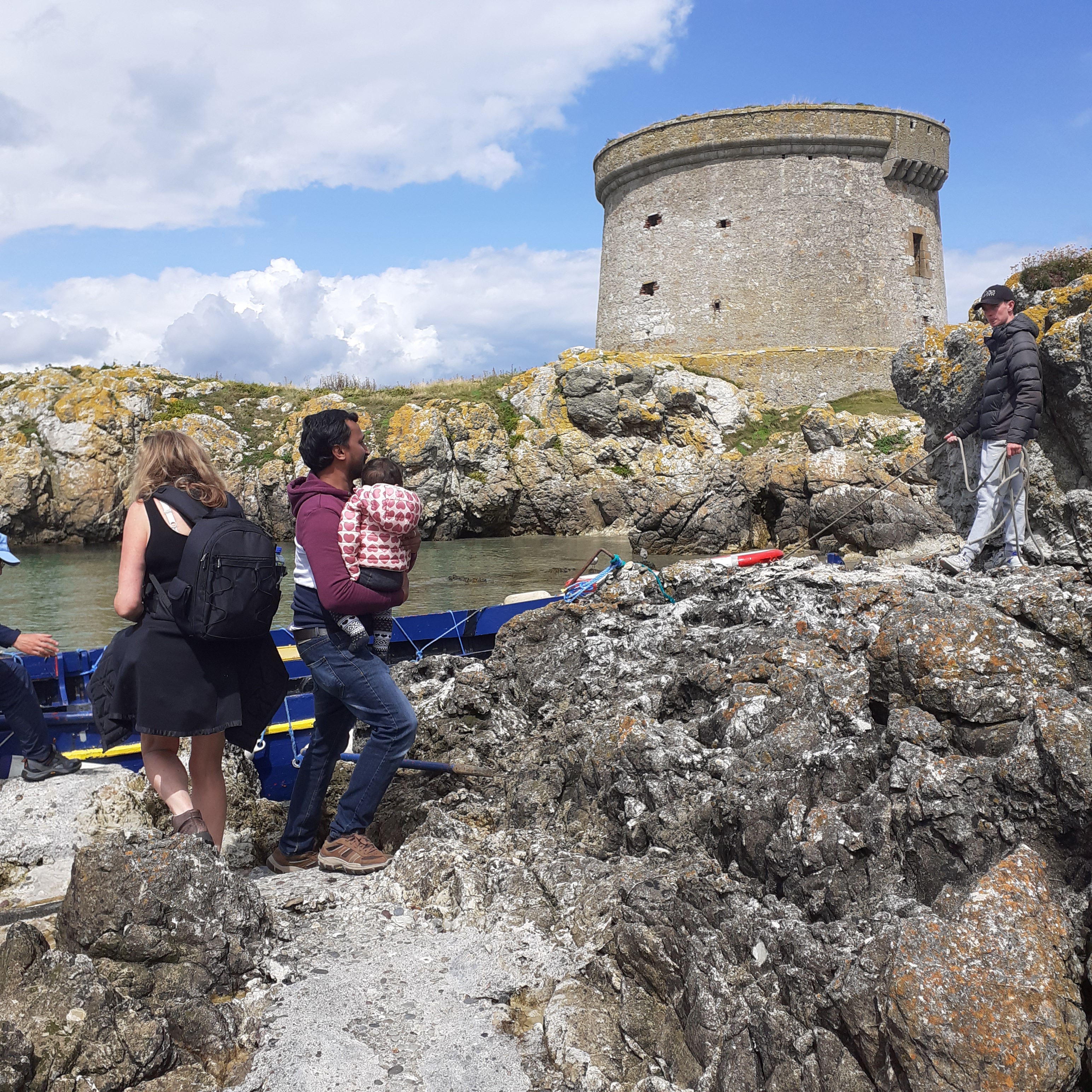 Ferries to the island, and across the bay to Dun Laoghaire, leave from the West Pier. You can book ahead to secure your seats. The crossing takes ten minutes or so, and sailings are every hour. There are a number of options with different operators, averaging about twenty five euro, but if the weather’s fine plump for landing on and exploring the island.
