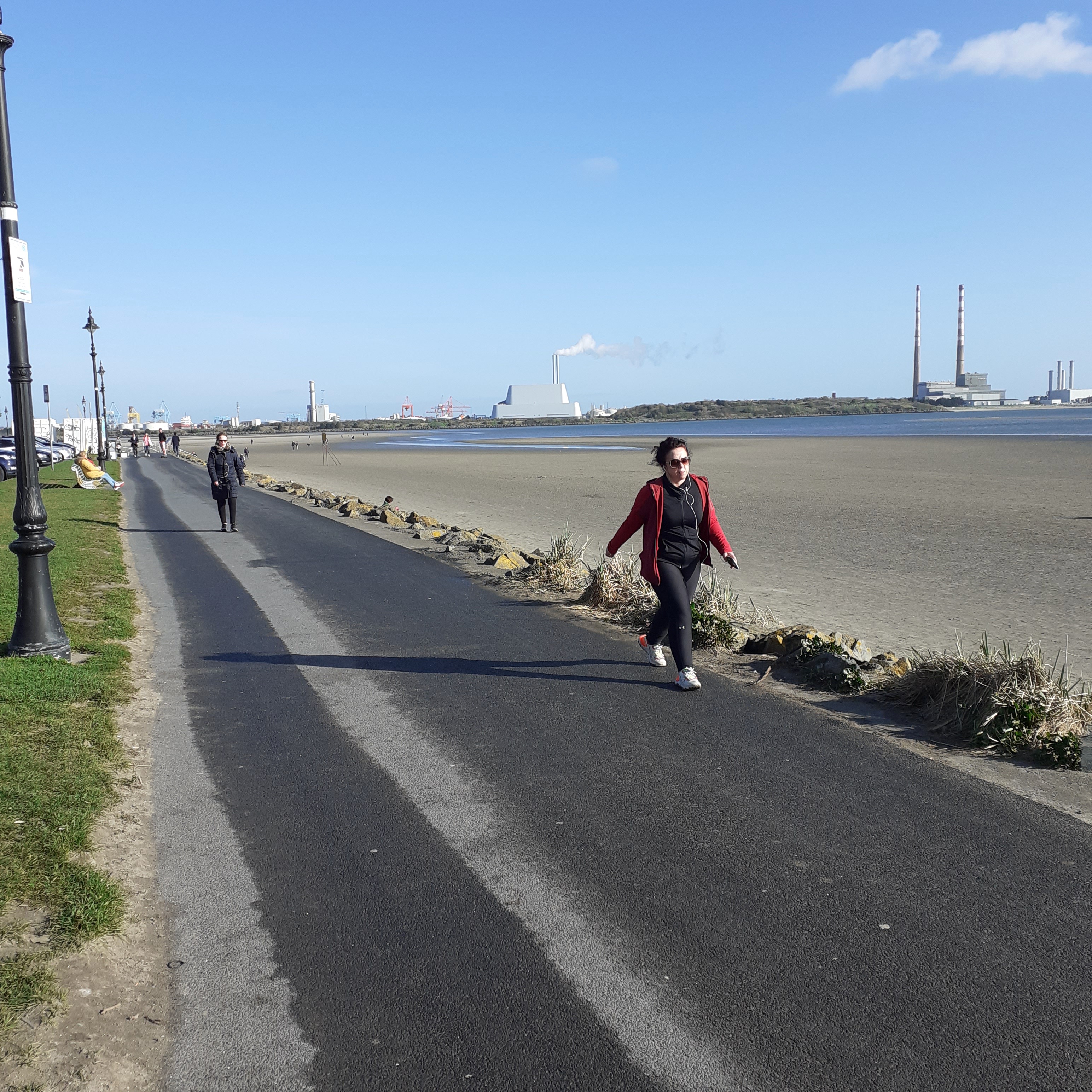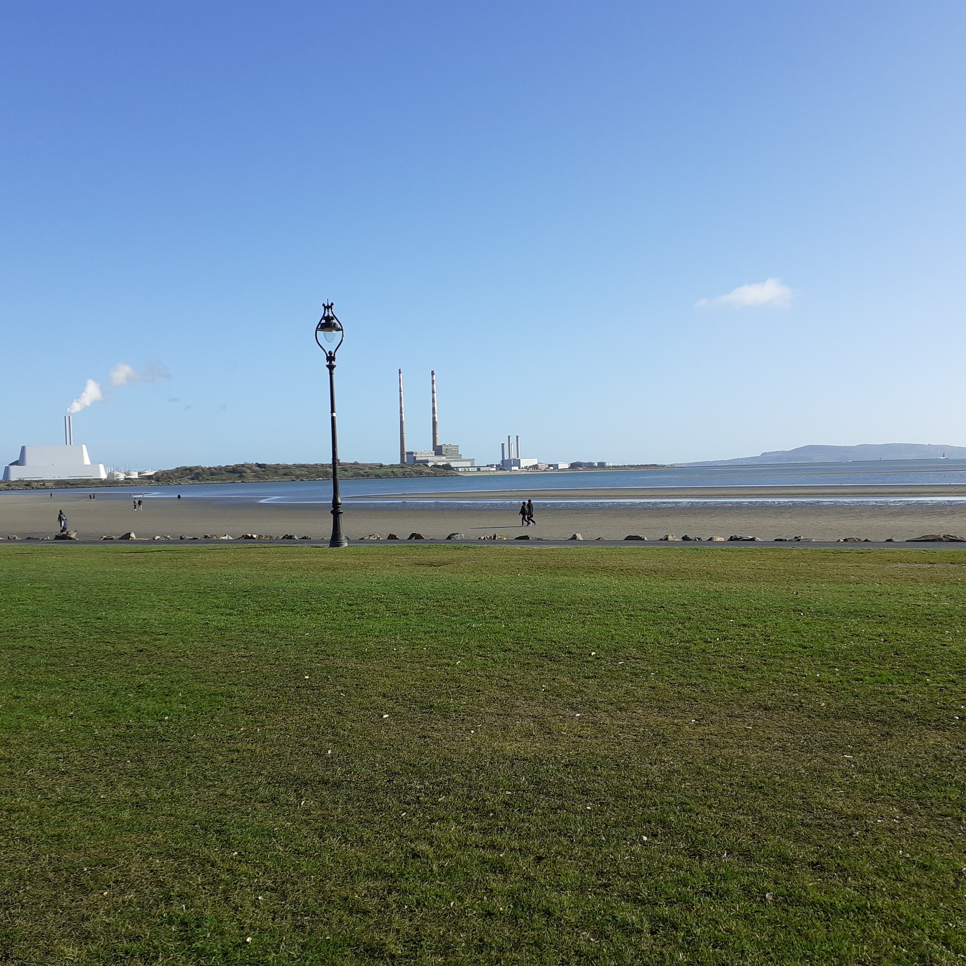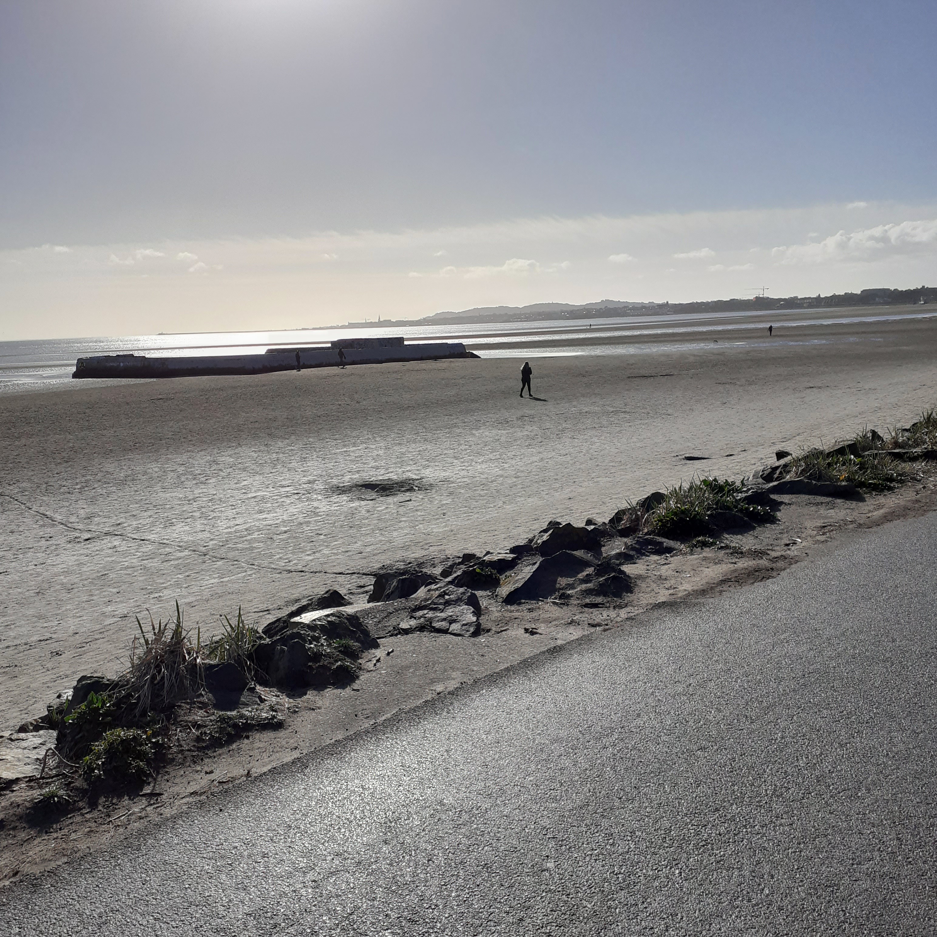 South of Irishtown we enter Sandymount, with a famed and rather amazing beach. Sandymount Strand is formed in the lee of the Poolbeg Peninsula. It is something of a mirror of the Bull Island north of the Liffey, but unlike that it directly abuts the shoreline. With the tide out, Sandymount Strand is a vast, flat expanse of golden sand nestled into the curve of Dublin Bay. Away to the north and east the panorama is framed by the spiky contrast of the docklands, with the twin chimneys of the Pigeon House and the gleaming Poolbeg Incinerator dominating. The sea is reduced to a blue score along the horizon. It has the feel of a Surrealist painting when dotted with people on a blue sky day. Walking out there is to be at one with the world. You might well ask yourself: Am I walking into eternity along Sandymount strand? Just as Stephen Dedalus mused of a morning here in James Joyce’s Ulysses. And you might well be. Then the tide will come in and cover it all.