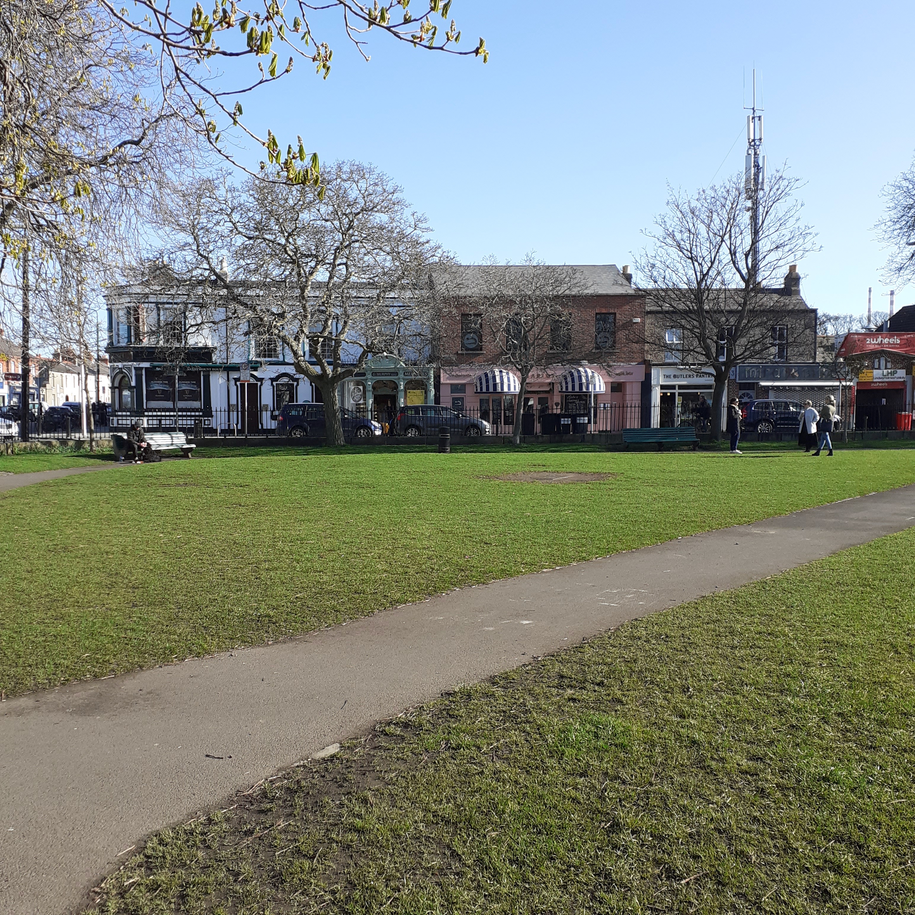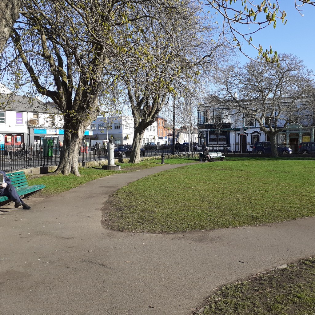 As a designated route linking Blackrock to Booterstown, the park is open all hours. There’s a children’s playground, designated cycle path, and an outdoor gym area. Heading around the pond, there’s a folly on the larger island to the south and here the terrain is softened and shaded by mature woodland. Farther on there’s a traditional bandstand. You can exit the park uphill at an entrance taking you to Main Street, or, as I did, through a narrow lane along the railway line, emerging at the Station.