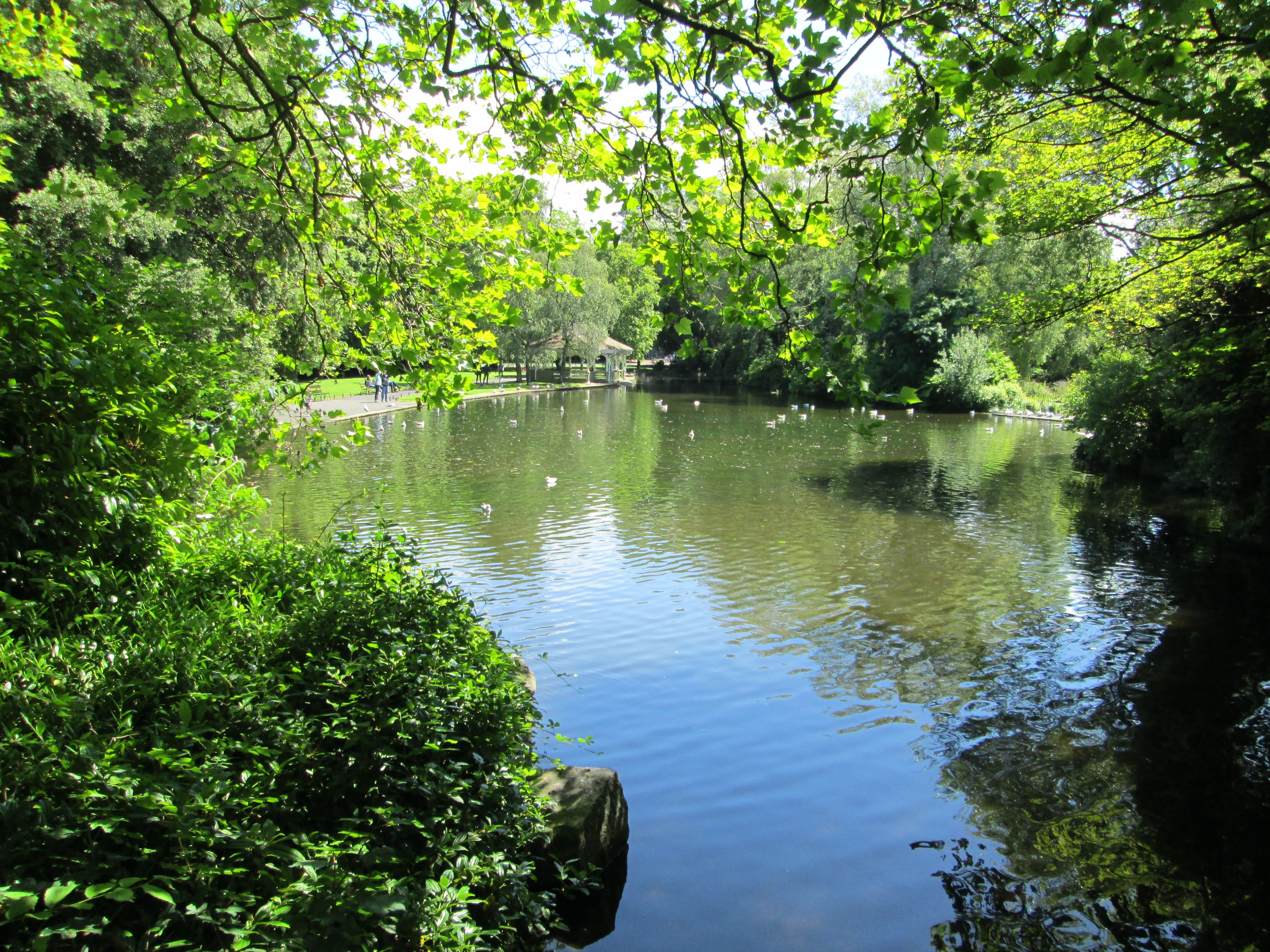 The Green was walled in 1664 with access restricted to owners of adjacent properties. The surrounding houses would have been gable fronted properties, known as Dutch Billys. This style gave way to Georgian by the middle of the eighteenth century. Vestiges of the earlier style can be discerned. Look above street level and you will see, here and there, an asymmetrical window layout on the upper storeys, indicating where a gable frontage once was. The Green was restricted to residents until 1877 when Sir A E Guinness, Lord Ardilaun, campaigned to put the park into public ownership. The park was newly laid out to the design of William Shephard, Lord Ardilaun contributing the extensive planting of exotic trees and shrubs.