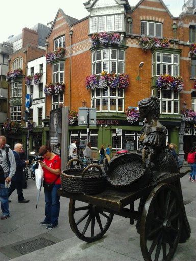 In old Dublinese, fever and save her would rhyme. She can still wheel her wheelbarrow, all the same. Last time I saw it ‘twas at the bottom of Grafton Street, now it stands outside Saint Andrew’s Church. Mythology has accreted to the song. The story goes that Molly was a seventeenth century barrowgirl who earned a bit on the side plying the oldest profession. The song certainly alludes to sex. Cockles and mussels (or muscles) has salacious connotations. The refrain has a bawdy singalong quality. Young lovers and visitors to the Fair City have taken the photo opportunity the statue offers. It is traditional to grasp one or both of Molly’s breasts, giving them a sunburst emphasis, fulfilling the myth’s premise.