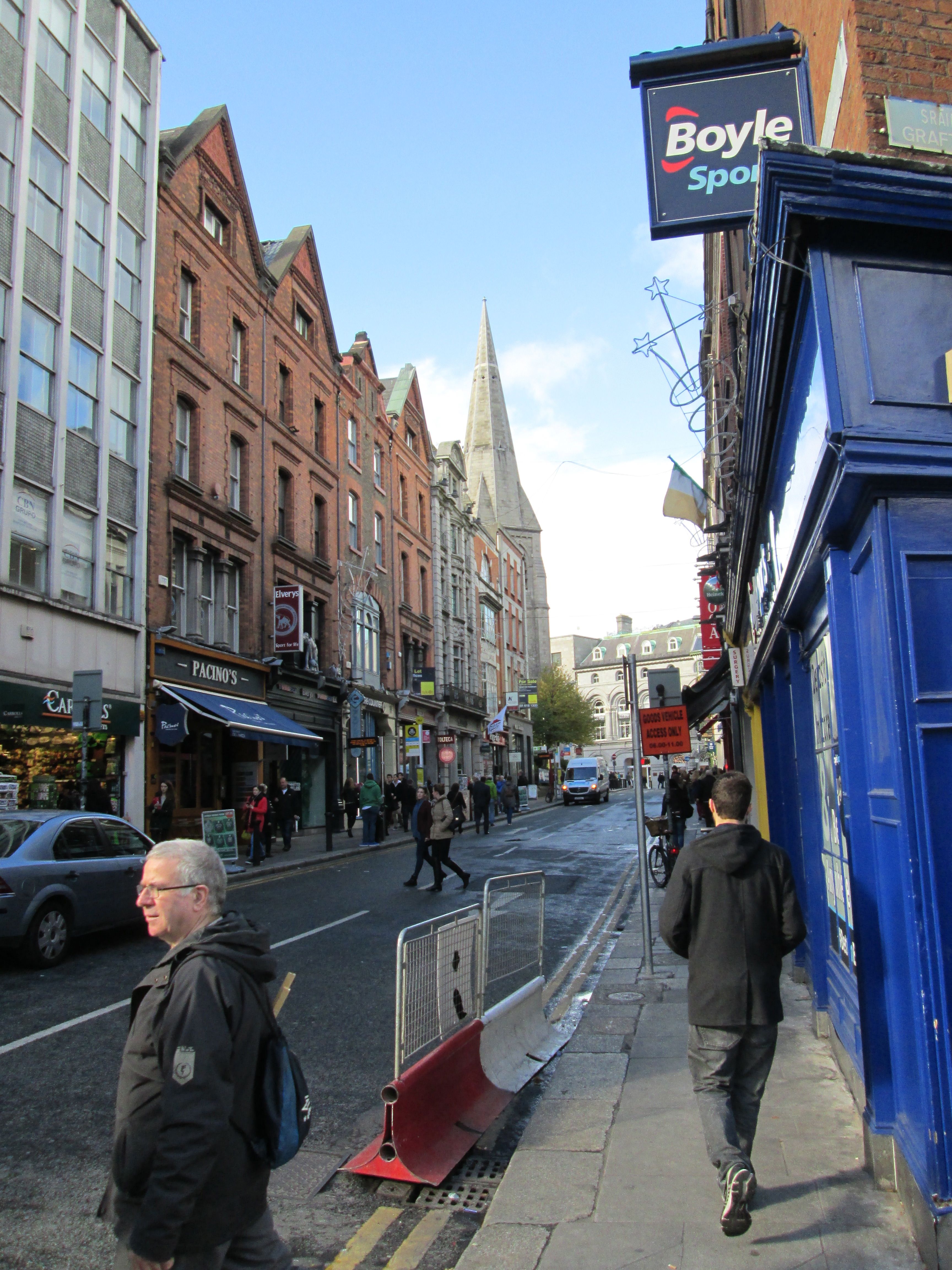 A few yards further east, Grafton Street runs at a right angle to Suffolk Street. Now Dublin’s principal shopping street, a bustling pedestrianised way thronged with shoppers and tourists, lined with buskers and street theatre.