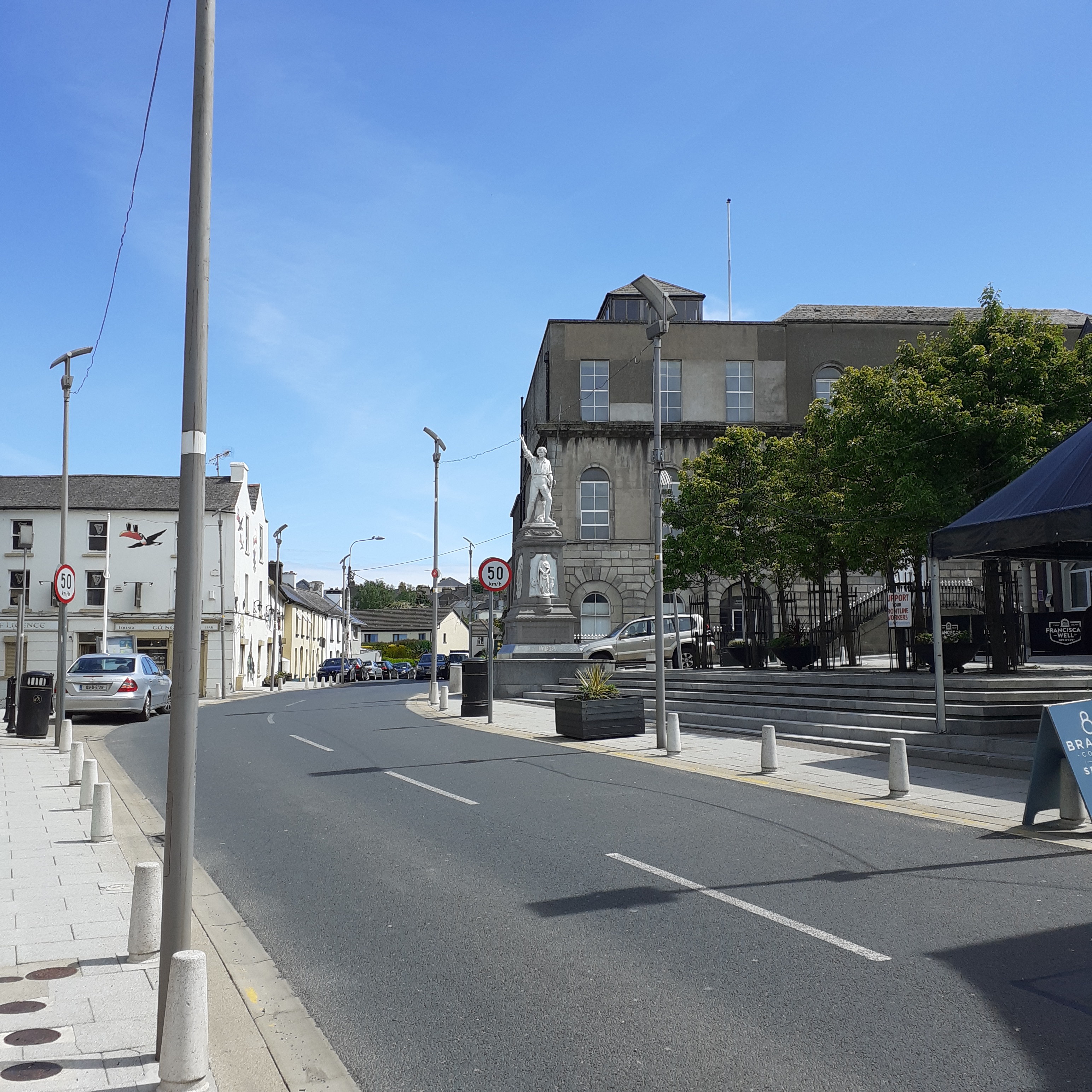 From Fitzwilliam Square, Main Street snakes south. The road, rather weirdly, divides onto two levels, the lower being known as the Mall. In the shade of trees it’s suggestive of an ancient fortification and exudes a rusted, uncertain charm. There are steps up to Main Street. Further on, the roads reconcile, before opening onto Market Square. Market Square is the quintessence of loneliness. The bustling town recedes and the square teeters on the edge, somehow forgotten. It is the nearest you get to being in a painting by De Chirico.